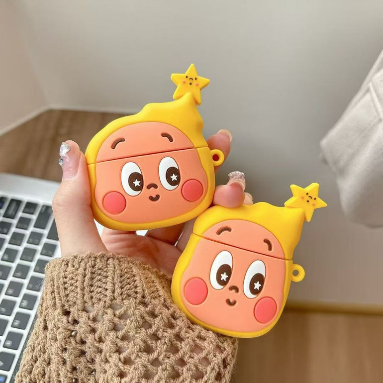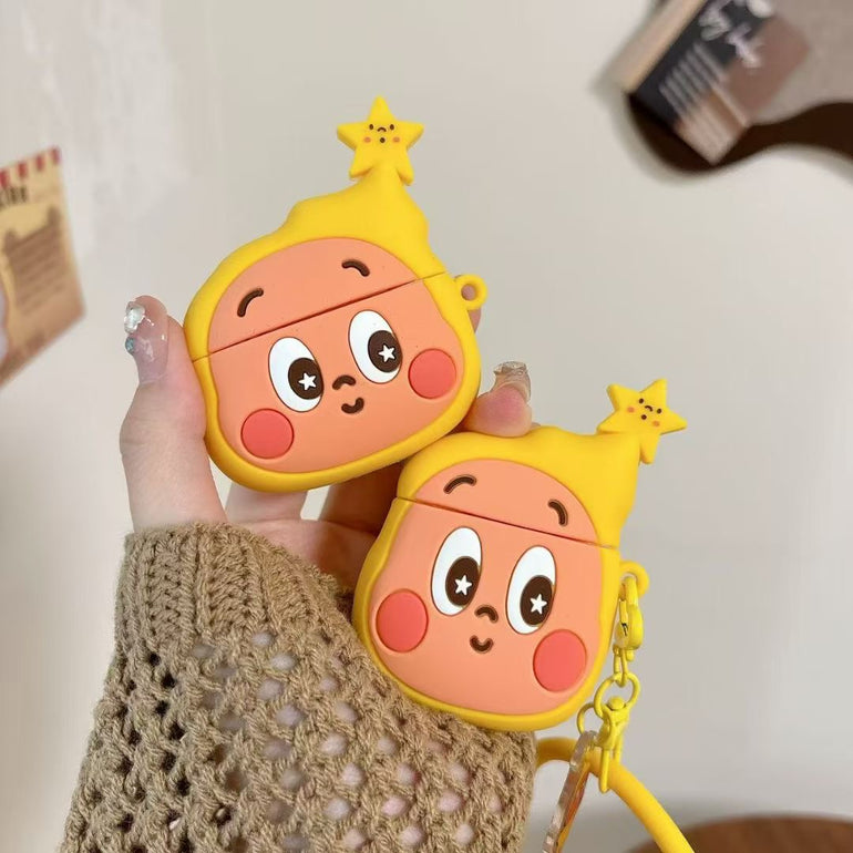 Yellow Star Cartoon AirPods Case With Charm & Strap