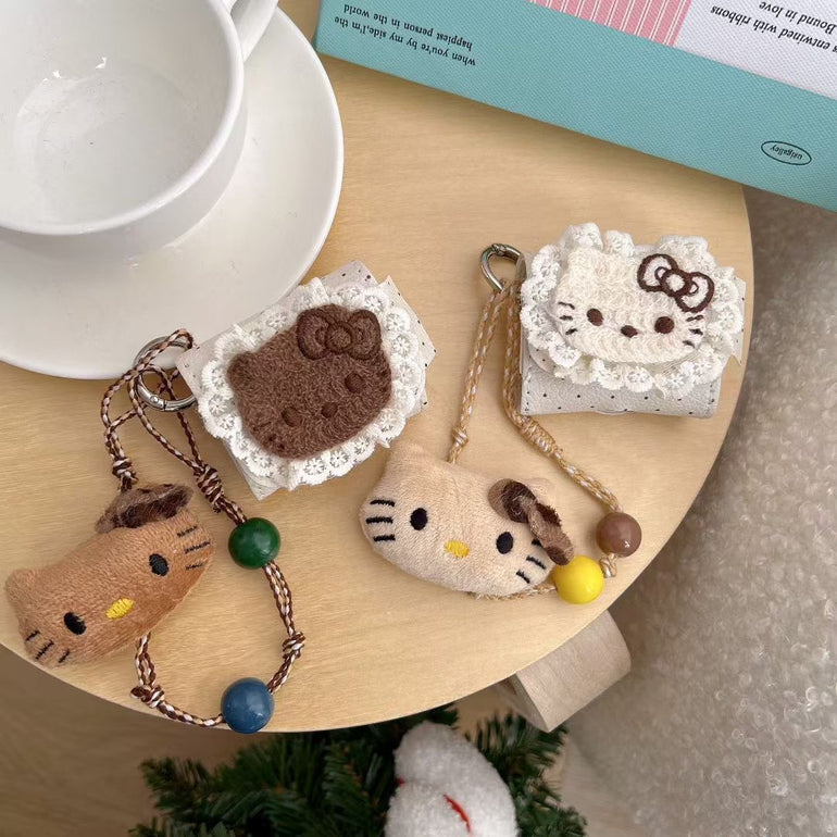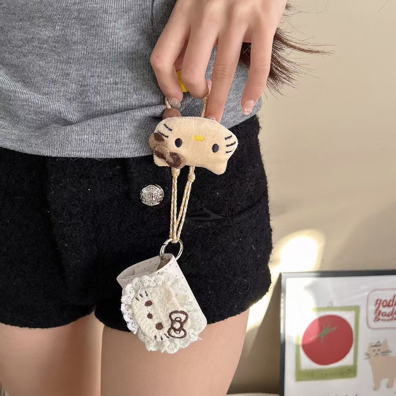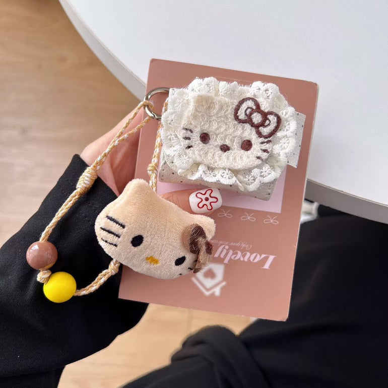 Designed with soft plush fabric, lace detailing, and an adorable kitty face, this case adds a sweet, aesthetic touch to your everyday accessories.