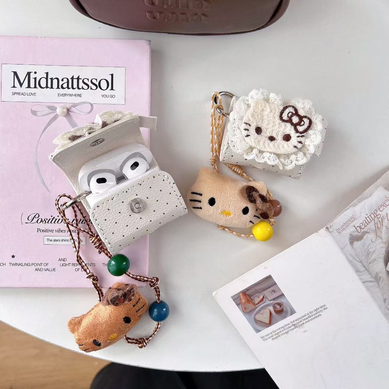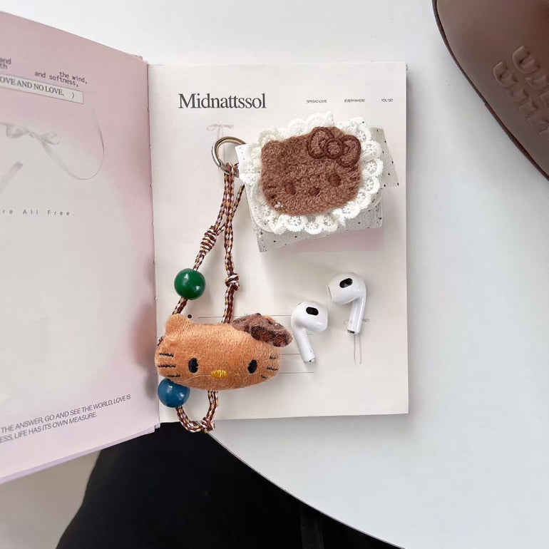 Cute Kitty Plush AirPods Case with Charm