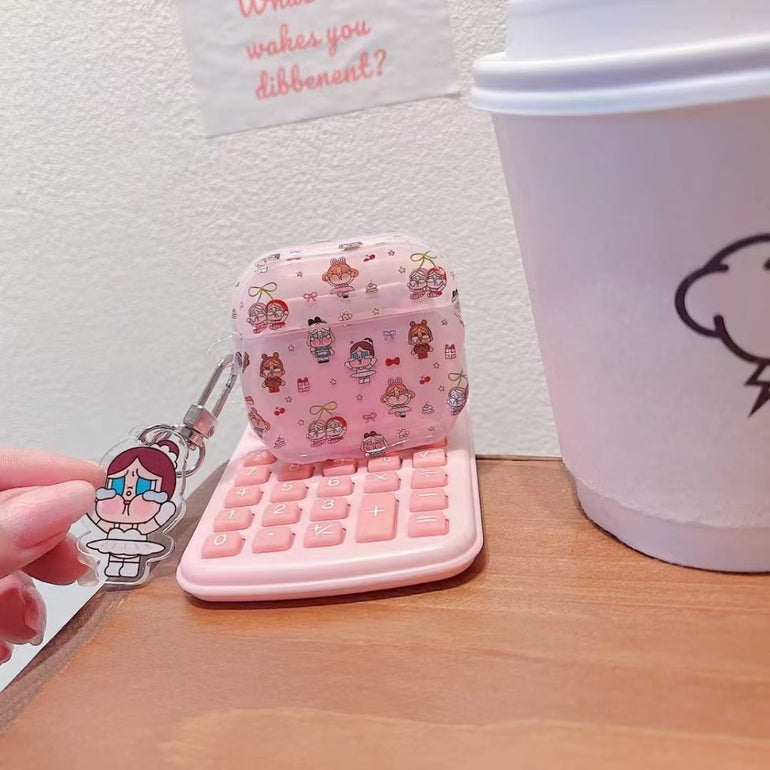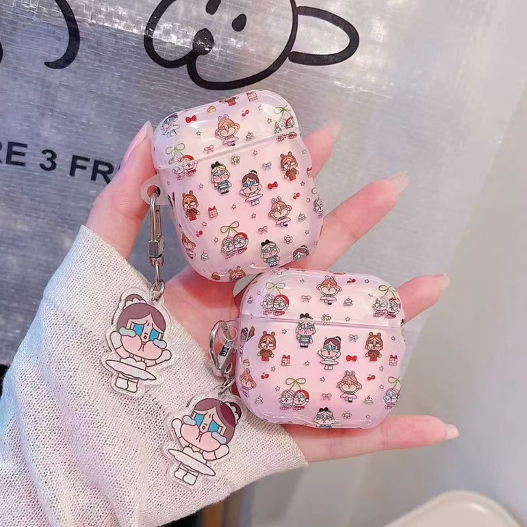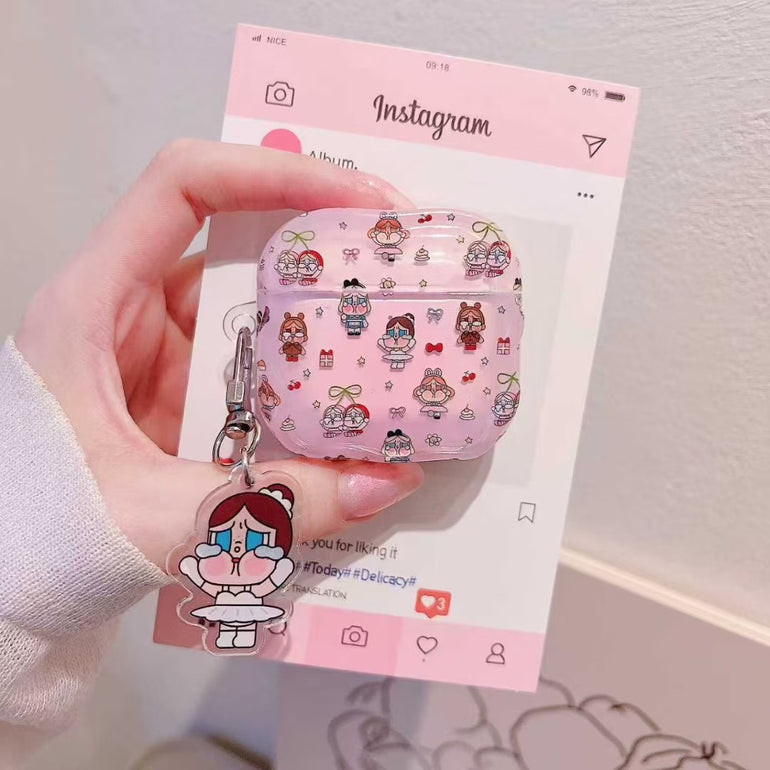 Add some fun to your AirPods with this pink cartoon character case, decorated with cute mini prints and a matching keychain charm. Designed for a perfect fit, it keeps your AirPods protected while giving them a playful, kawaii vibe.