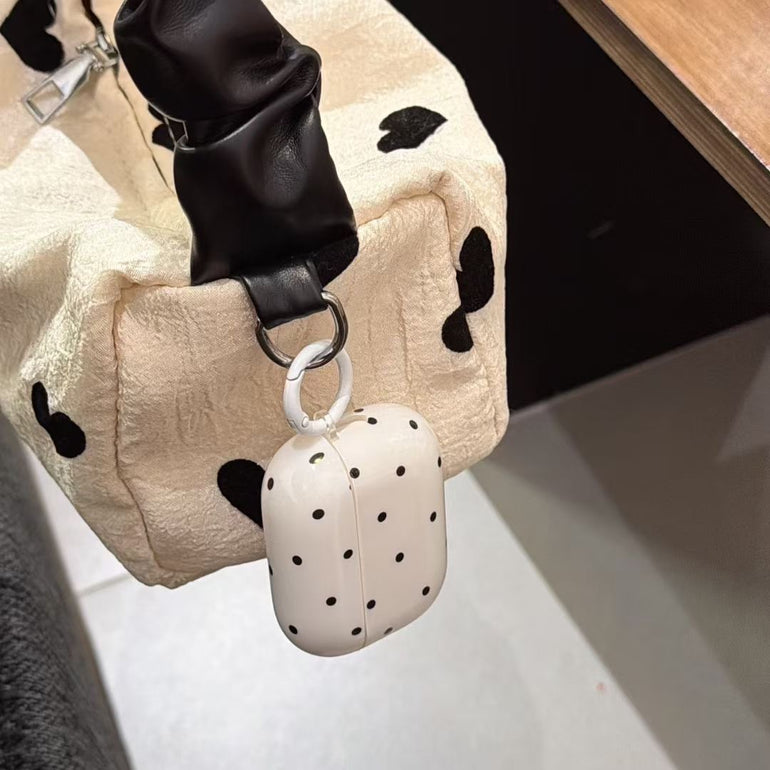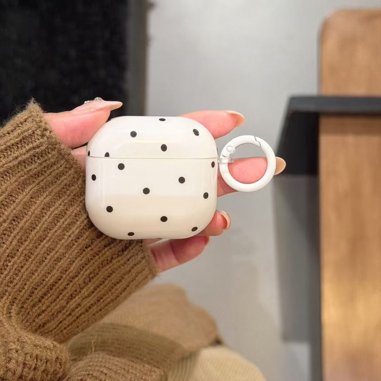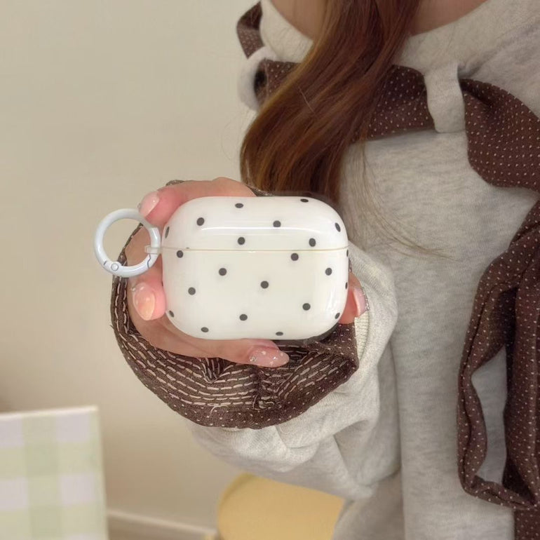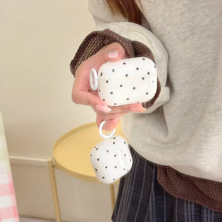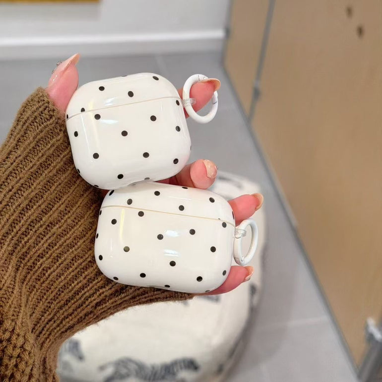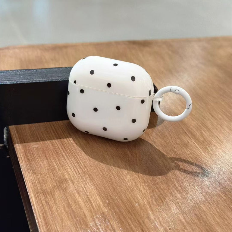 Add a touch of vintage cute aesthetic to your AirPods with this white glossy polka-dot case 🖤🤍