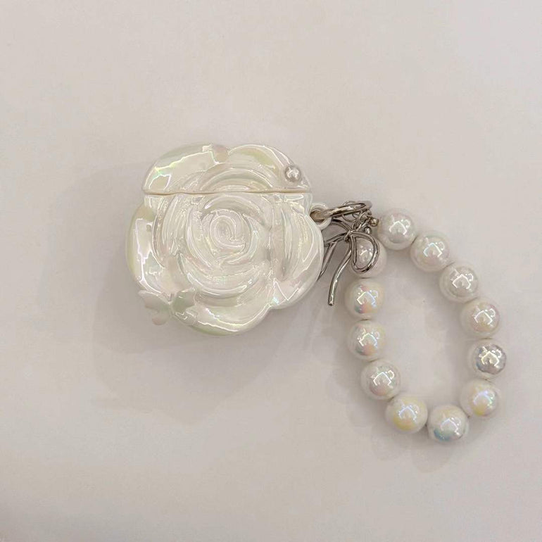 White Rose Case For Airpod With Beaded Charm