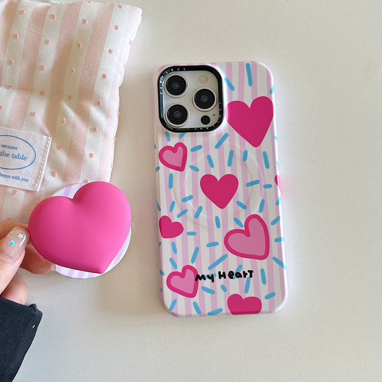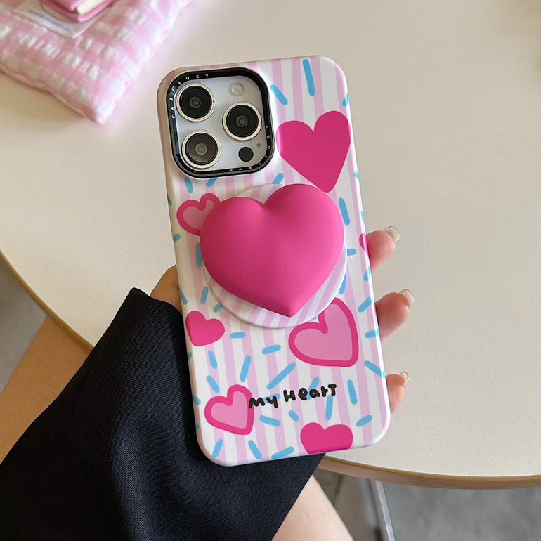 3D Heart iPhone Case with MagSafe Holder – Cute Love Design
