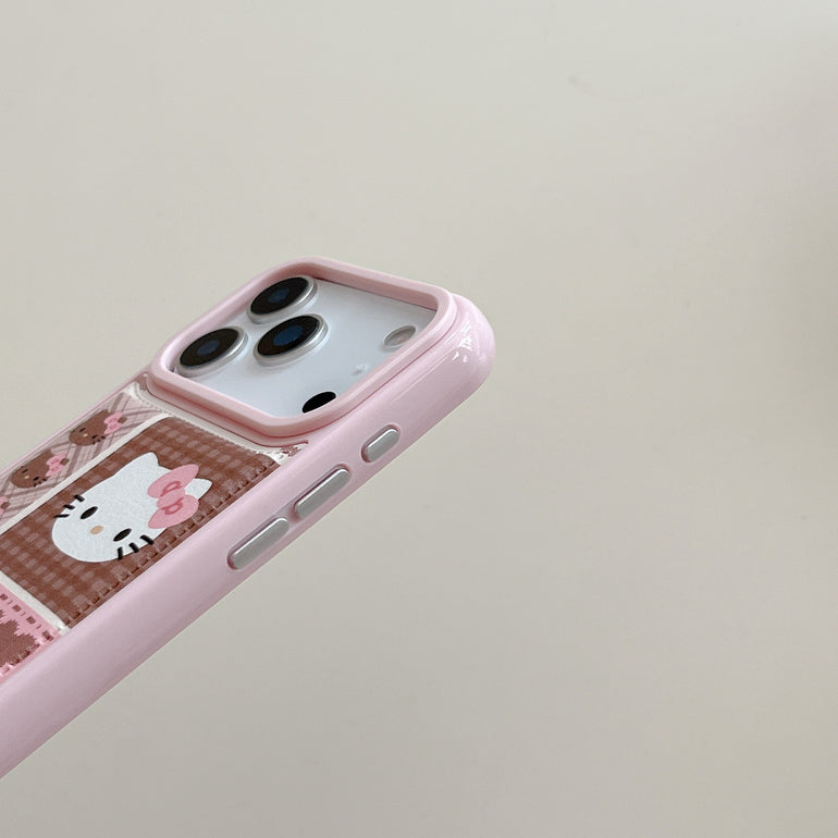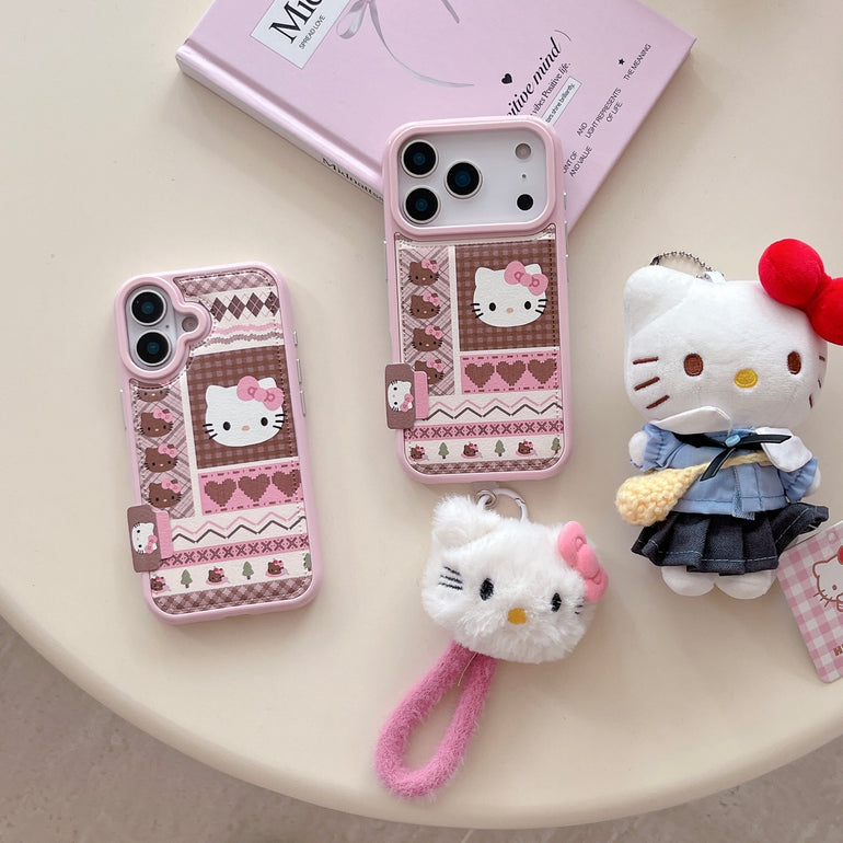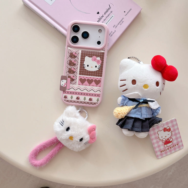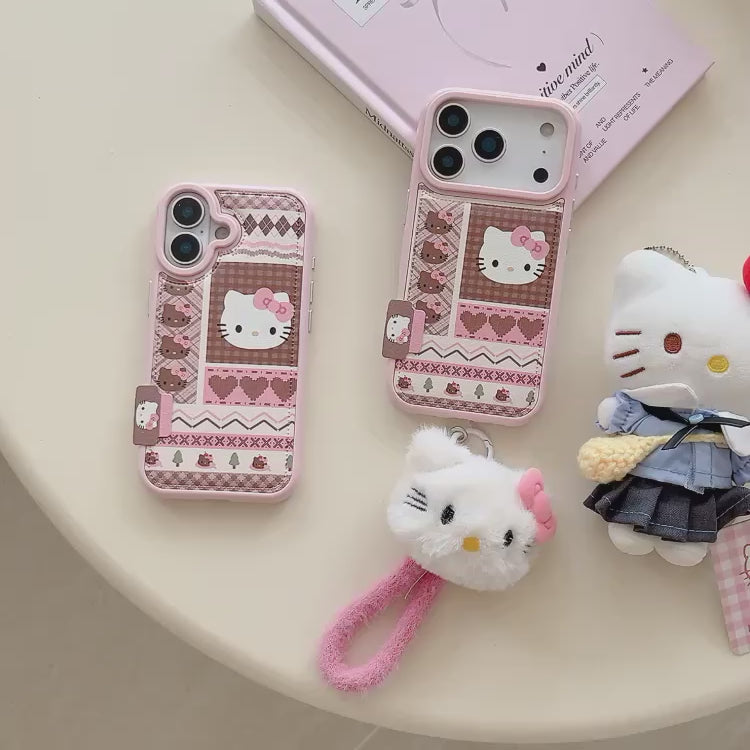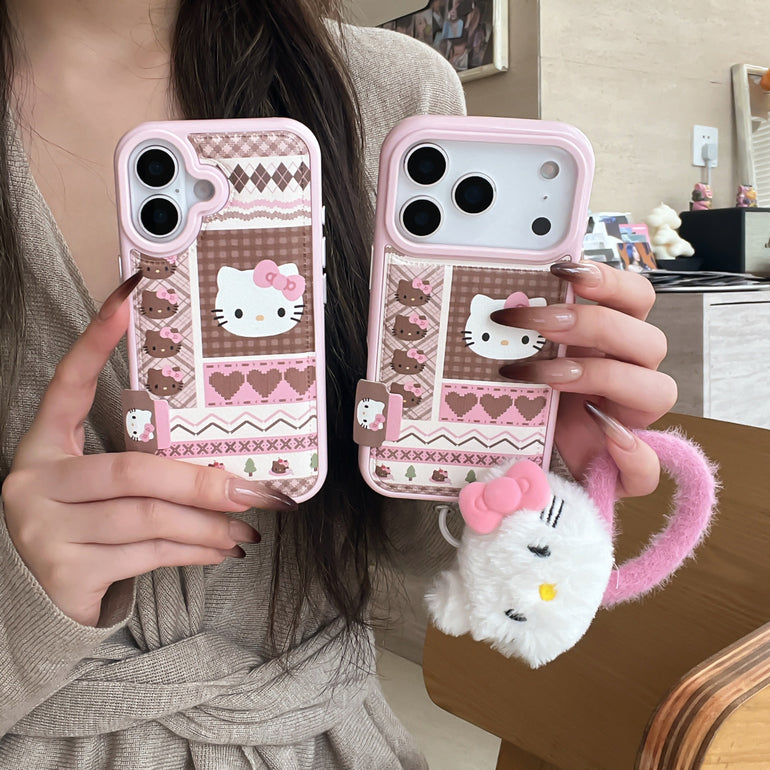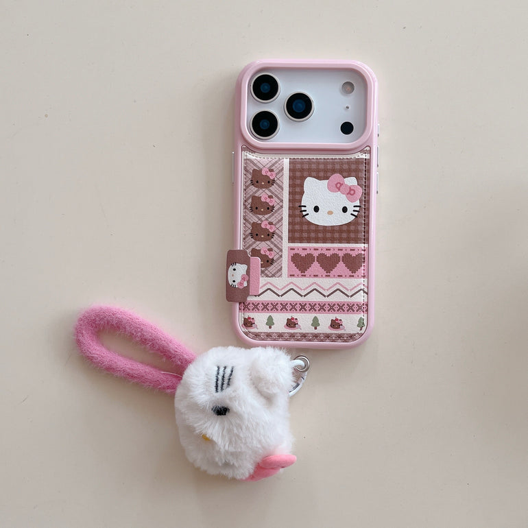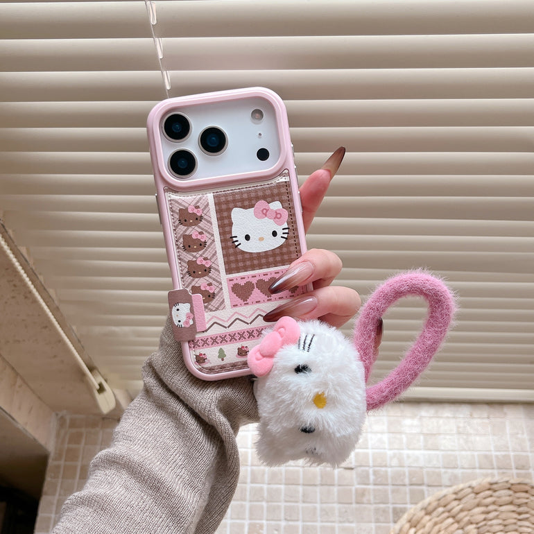 Cute Kitty Printed iPhone Case with Plush Kitty Charm