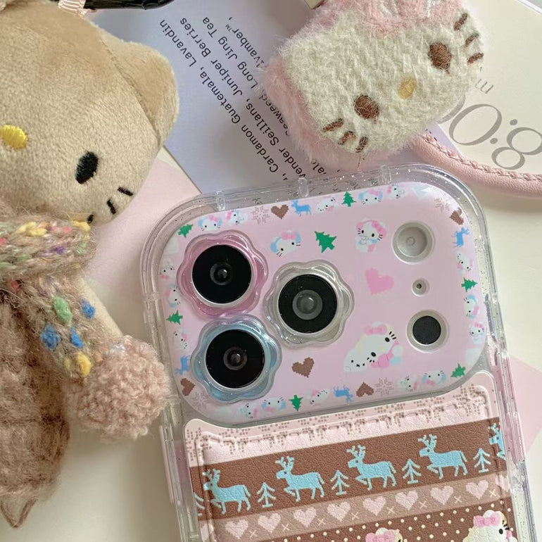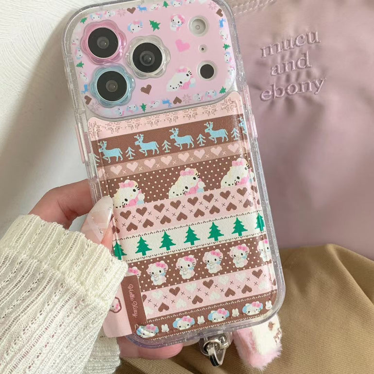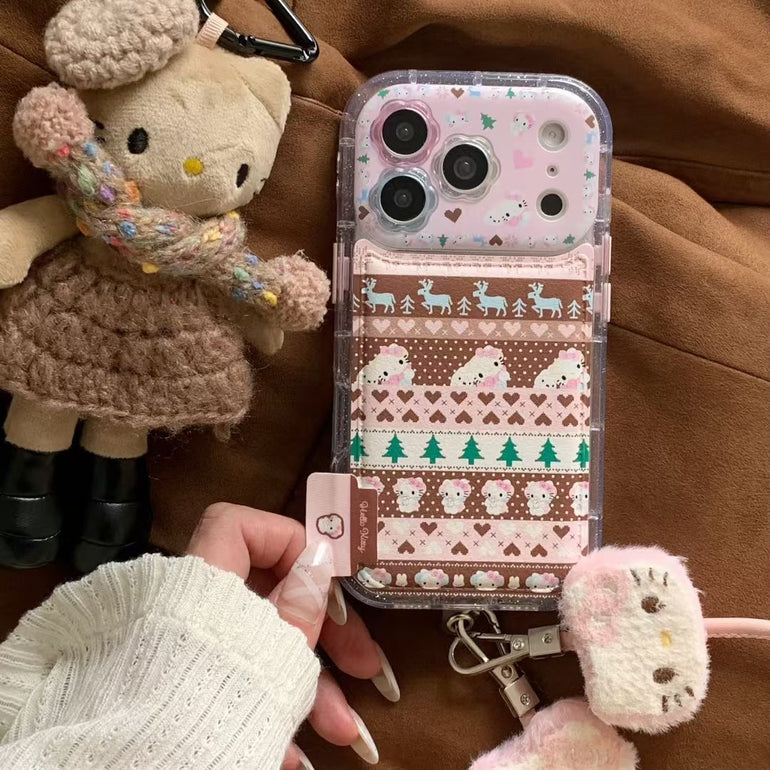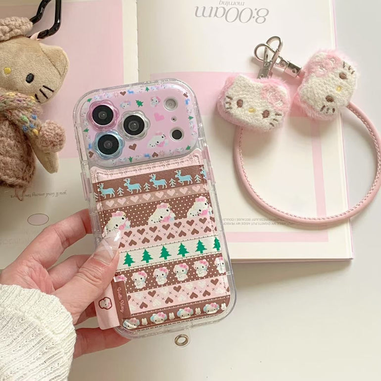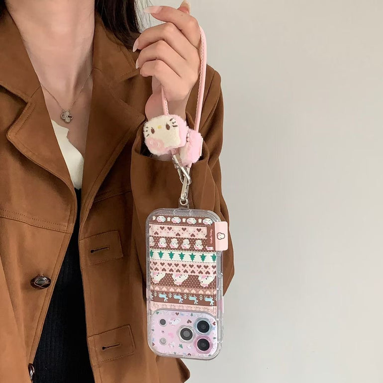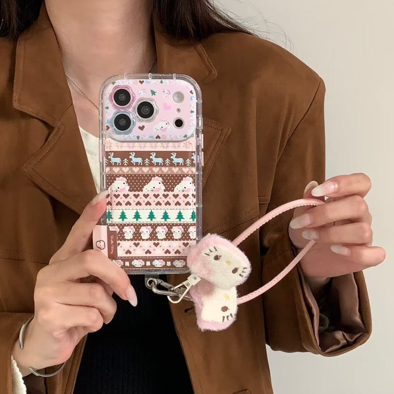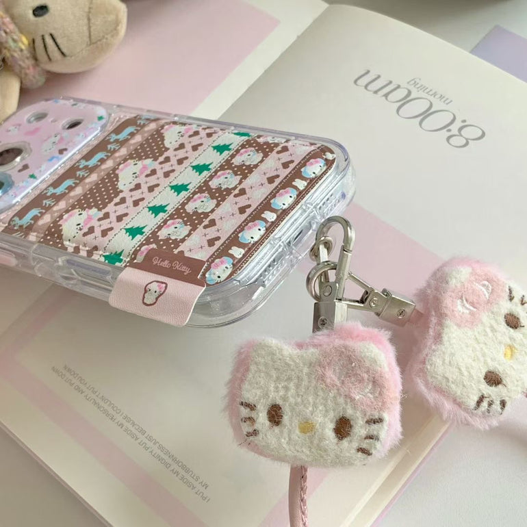 Cute Printed iPhone Case with Plush Kitty Charm