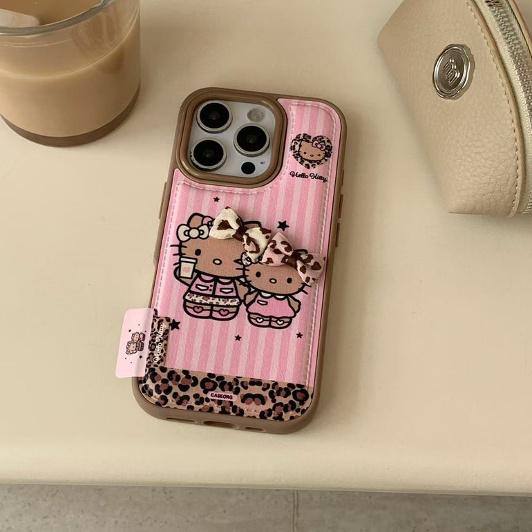 Add a cute yet chic touch to your phone with this Pink Kitty iPhone Case, featuring an adorable kitty duo design with striped background and leopard print detailing. The 3D fabric bows give it a fashionable twist, blending soft pink tones with playful animal prints for the perfect girly aesthetic.