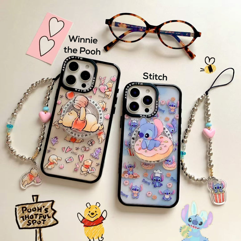 Bring cuteness and functionality together with this adorable cartoon phone case featuring your favorite characters. Designed with bright prints, a built-in MagSafe holder, and a detachable beaded hand strap, it makes your phone both stylish and easy to carry.