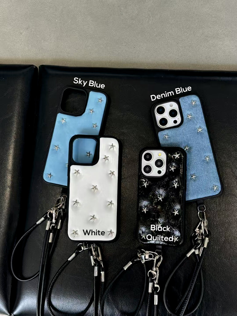 levate your style with this star studded leather iPhone case featuring a bold metallic star design and detachable charm strap for easy carrying. Perfectly blending luxury with protection, it’s the ideal case for those who love standout accessories.