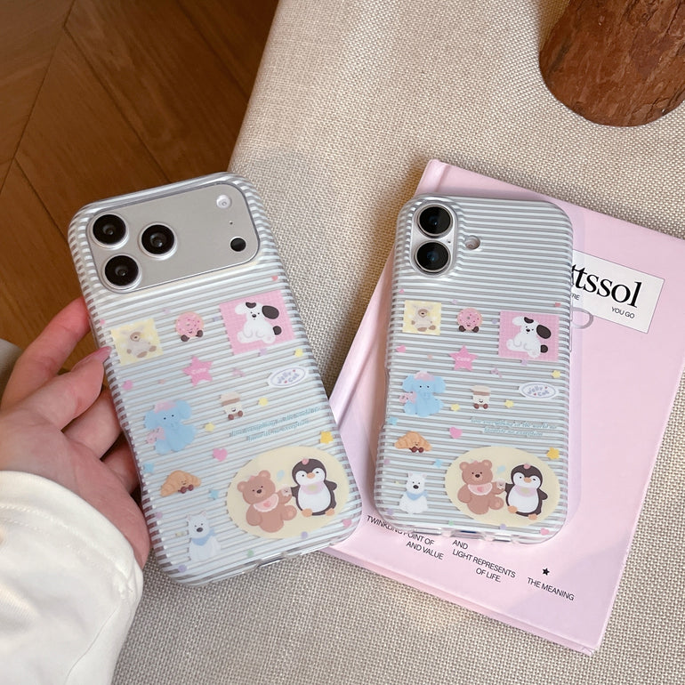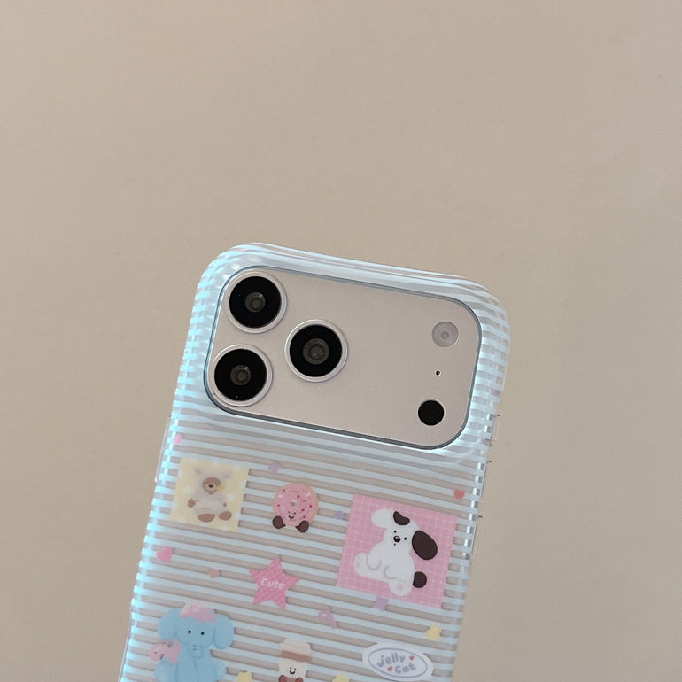 Add a playful vibe to your phone with this adorable cartoon sticker iPhone case. Designed with soft pastel stripes and cute character elements, this case gives a fun and aesthetic look while keeping your phone protected. Perfect for everyday use with a trendy cute style.