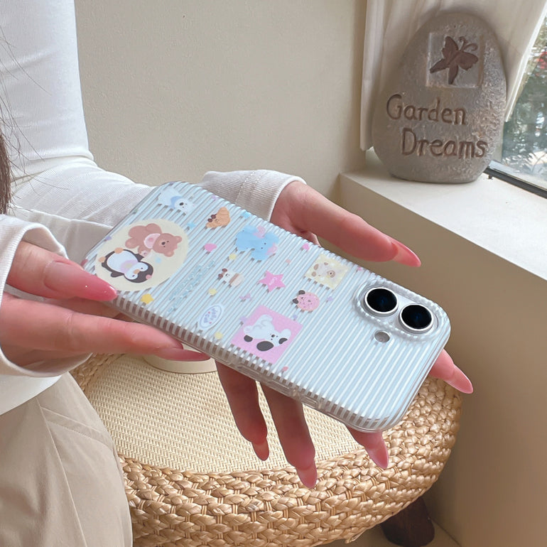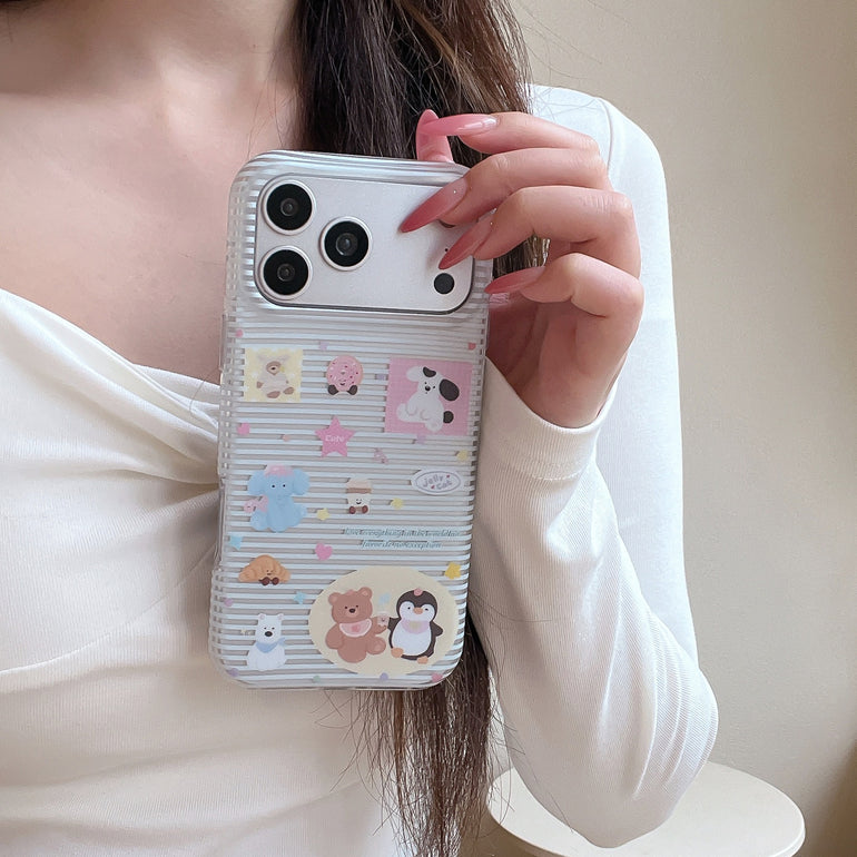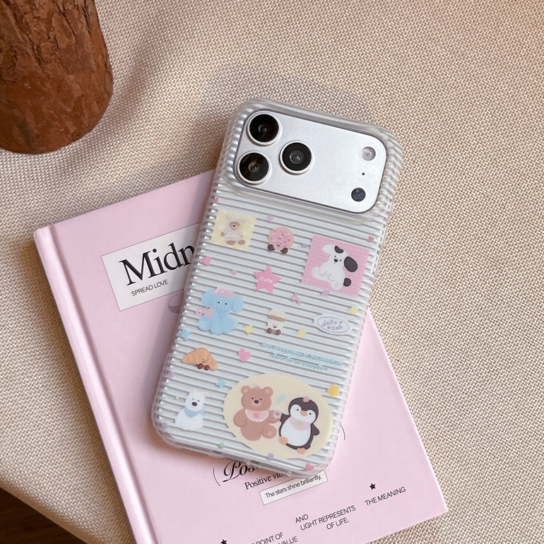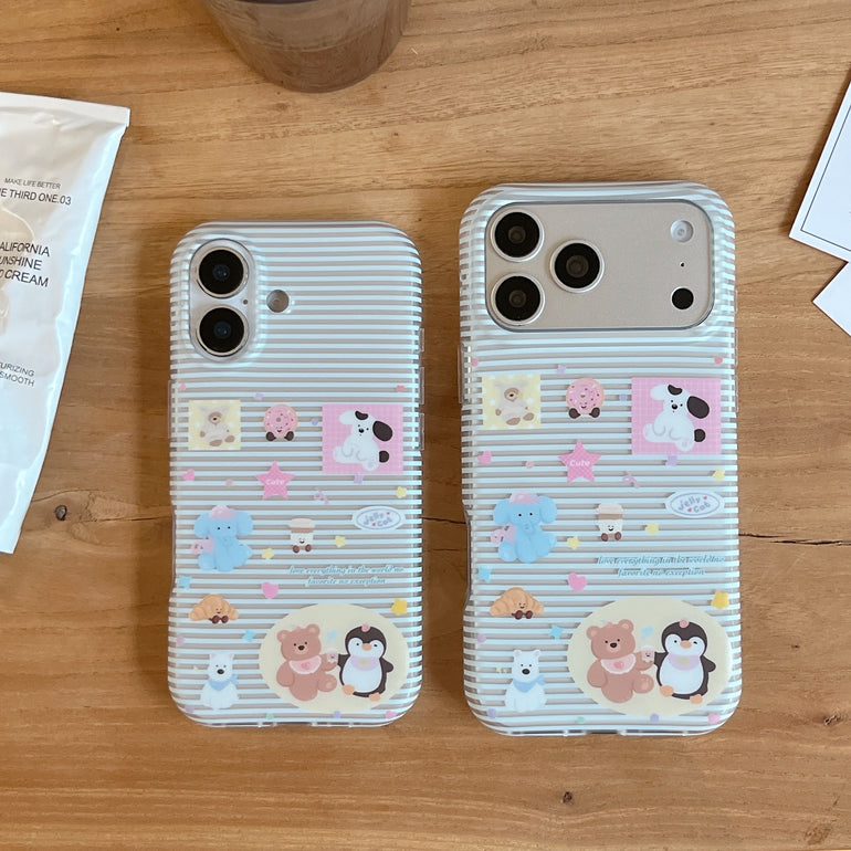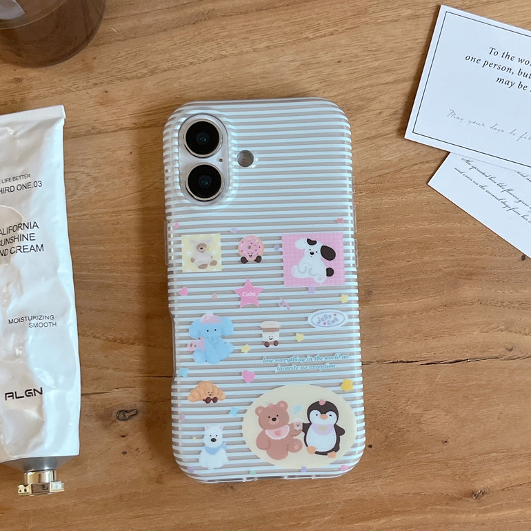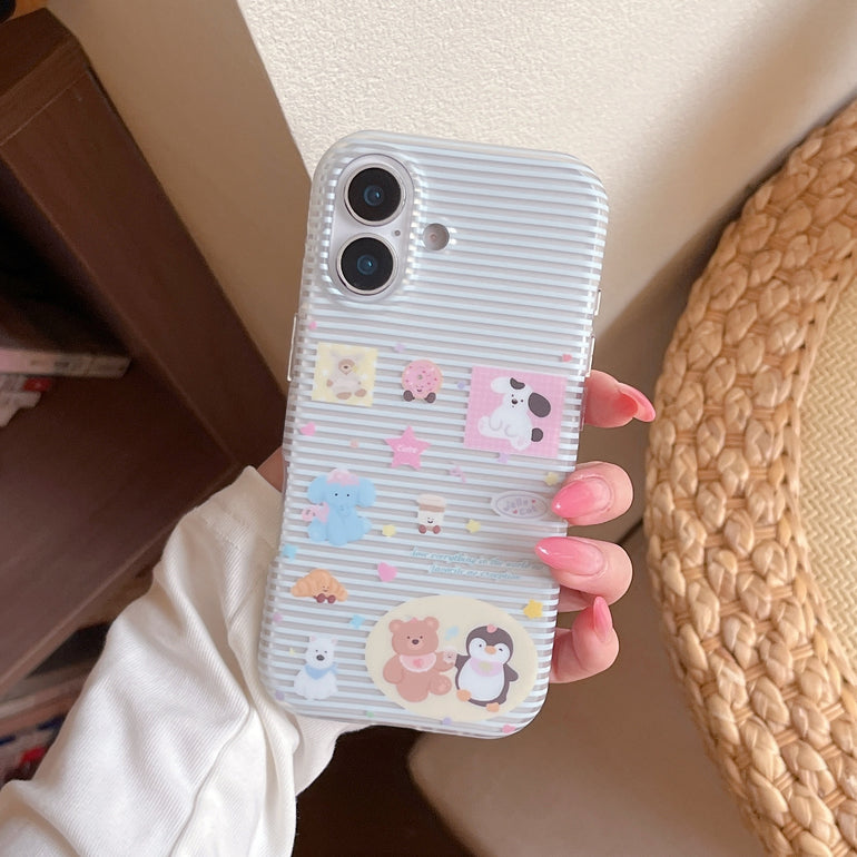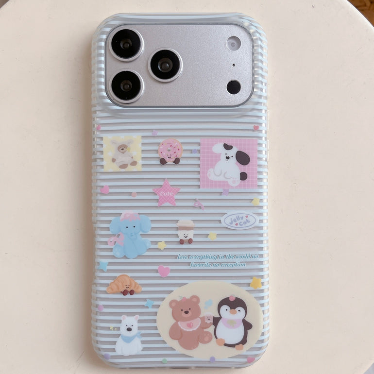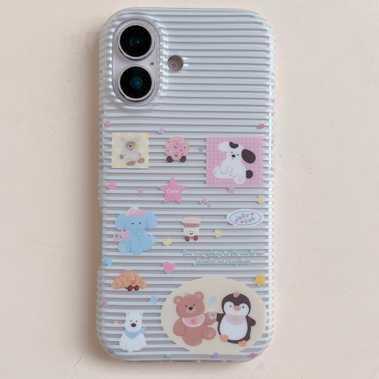 Cute Cartoon Sticker iPhone Case Aesthetic Striped Cover