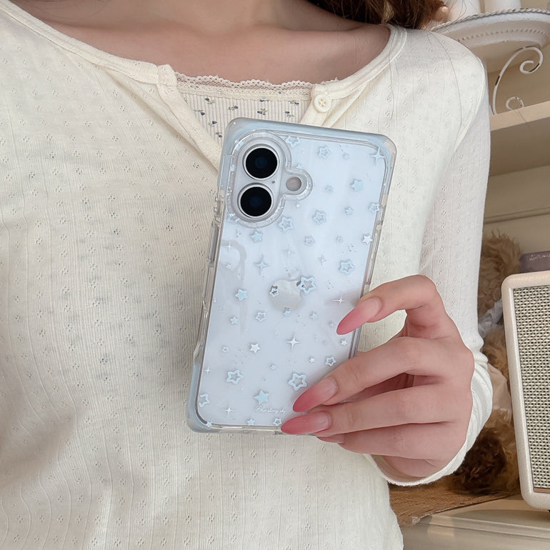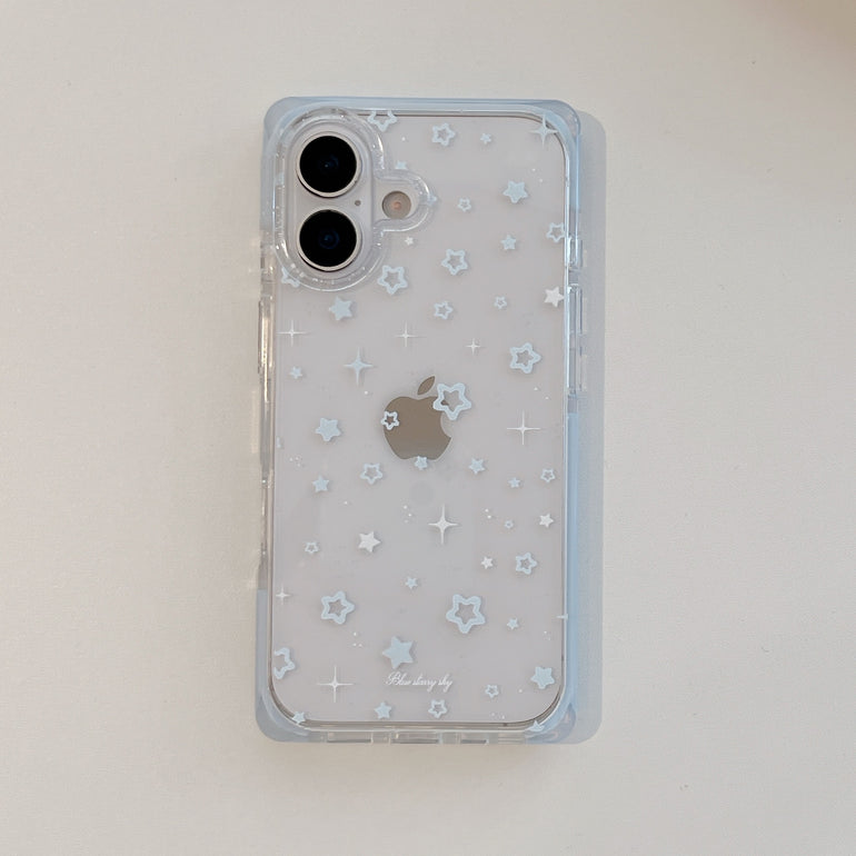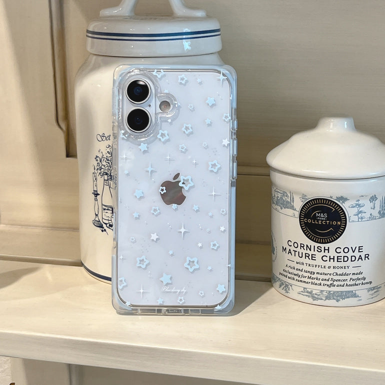 Bring a dreamy vibe to your phone with this blue starry sky iPhone case. Designed with soft pastel stars and sparkles on a subtle base, this case gives a calm and aesthetic look inspired by a night sky. The minimal design makes it perfect for everyday use while keeping your phone stylish and protected.