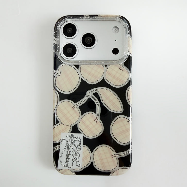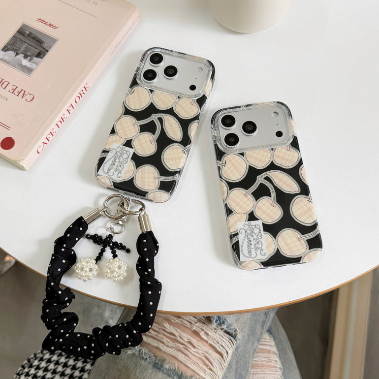 Add a stylish touch to your phone with this elegant cherry print iPhone case. Featuring a trendy plaid cherry design, this case comes with cute charm detailing that enhances its overall aesthetic. Perfect for daily use, it offers both style and protection in one.