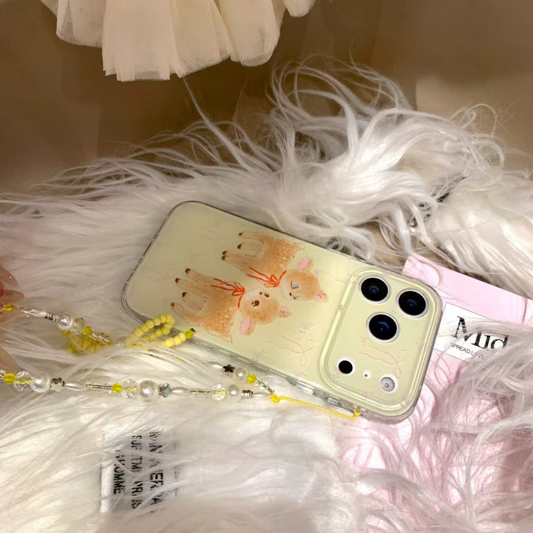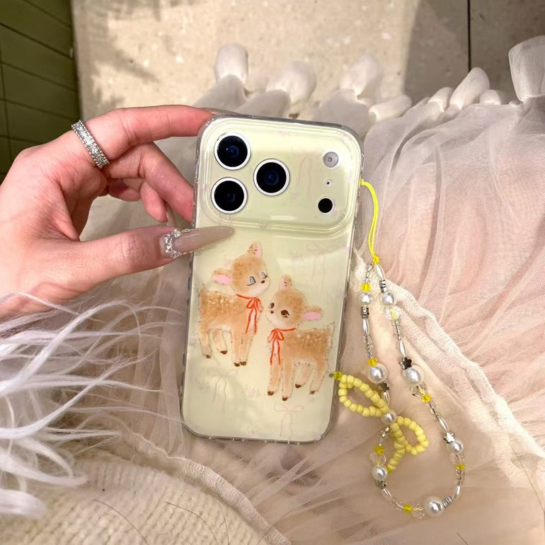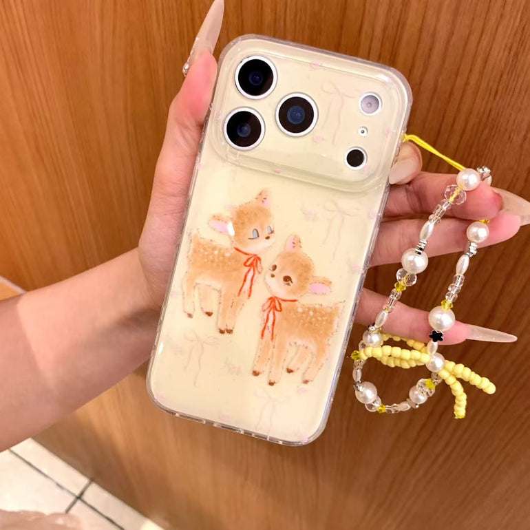 Add a soft and dreamy touch to your iPhone with this adorable deer print case. Featuring a pastel aesthetic design and a stylish pearl beaded charm strap, this case blends elegance with cuteness while offering reliable everyday protection.