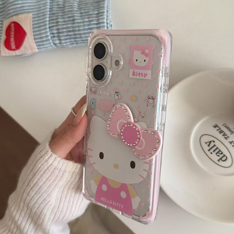 Add a soft and adorable touch to your phone with this kitty-themed iPhone case featuring a cute bow design and pastel pink aesthetic. The detailed character print with subtle mini elements gives a playful yet classy look, making it perfect for everyday styling while keeping your phone protected.