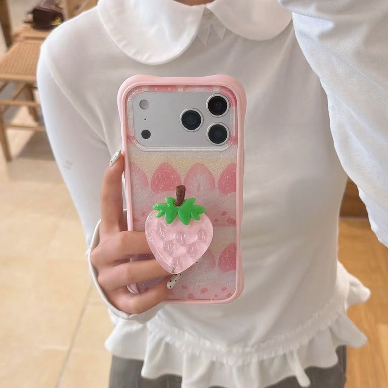 Add a sweet and playful vibe to your iPhone with this adorable strawberry-themed case. Featuring a cute 3D strawberry holder and a soft pink aesthetic design, this case brings a fun look while offering a comfortable hold and everyday protection.