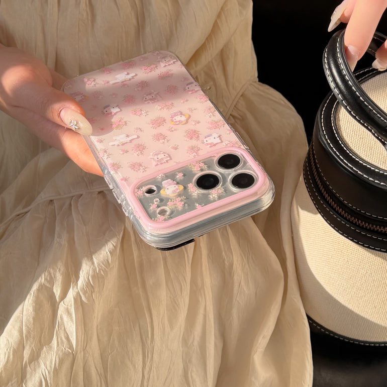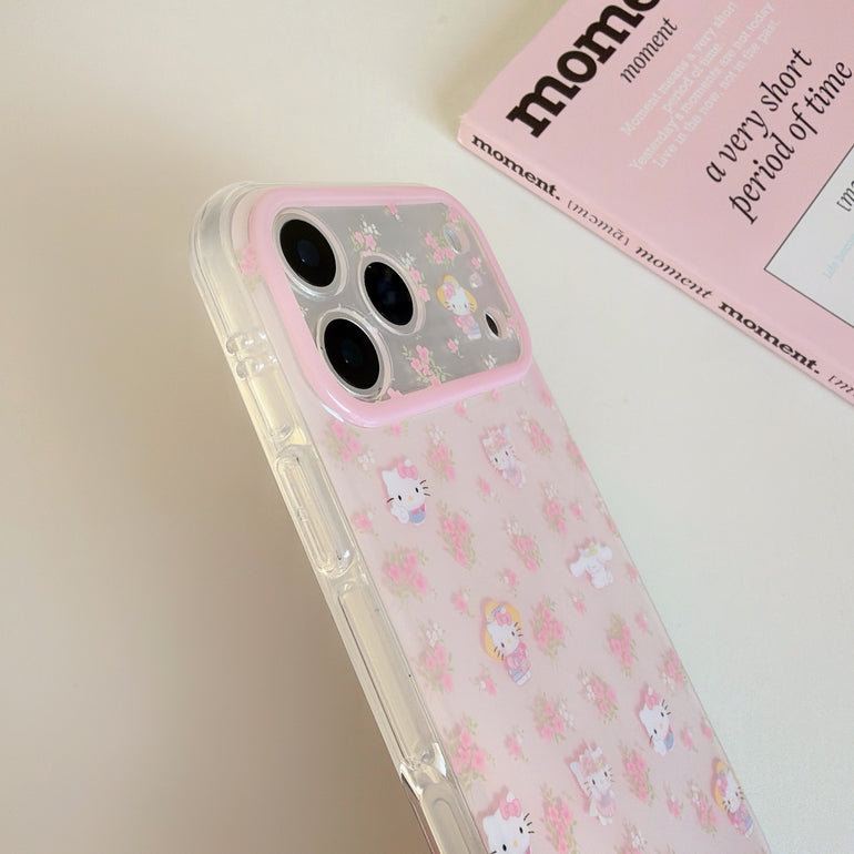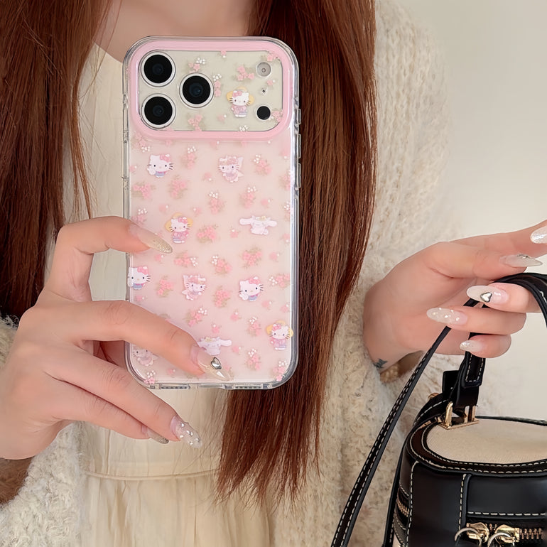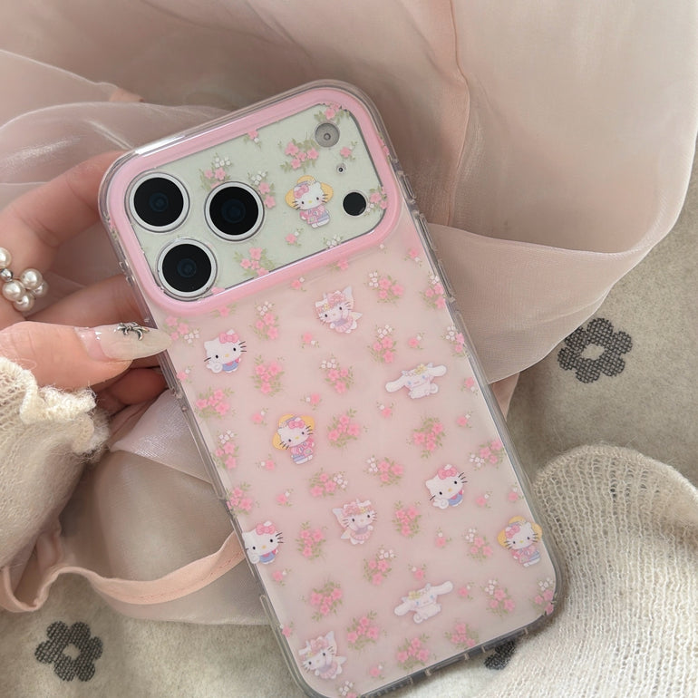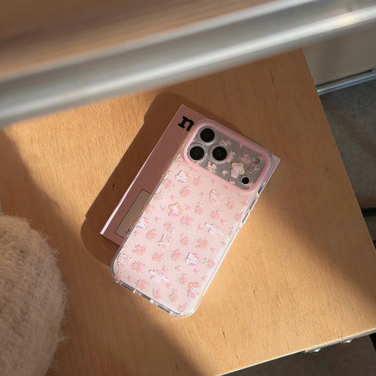 Bring soft aesthetic vibes to your phone with this floral kitty iPhone case featuring delicate pink flower prints and cute mini character detailing all over. The subtle pastel base with a smooth matte look gives a classy yet playful feel, making it perfect for everyday use. Lightweight, stylish, and protective—this case is a must-have for cute aesthetic lovers.