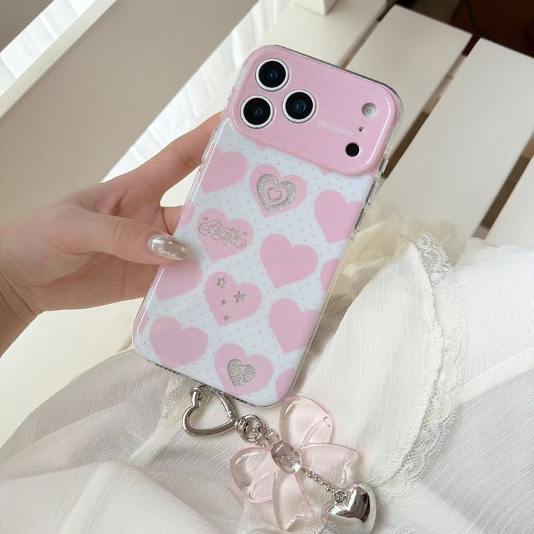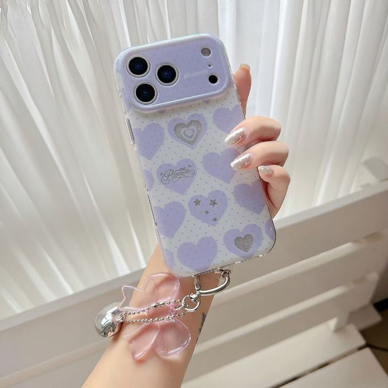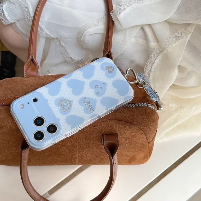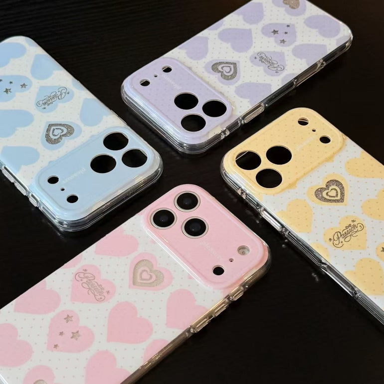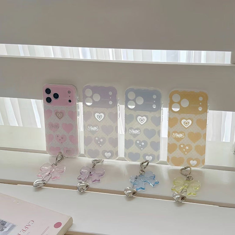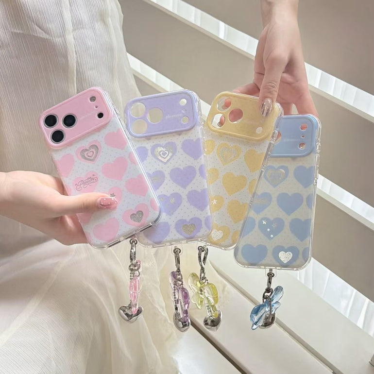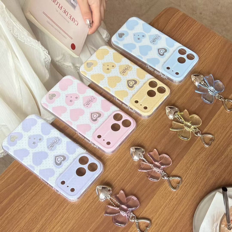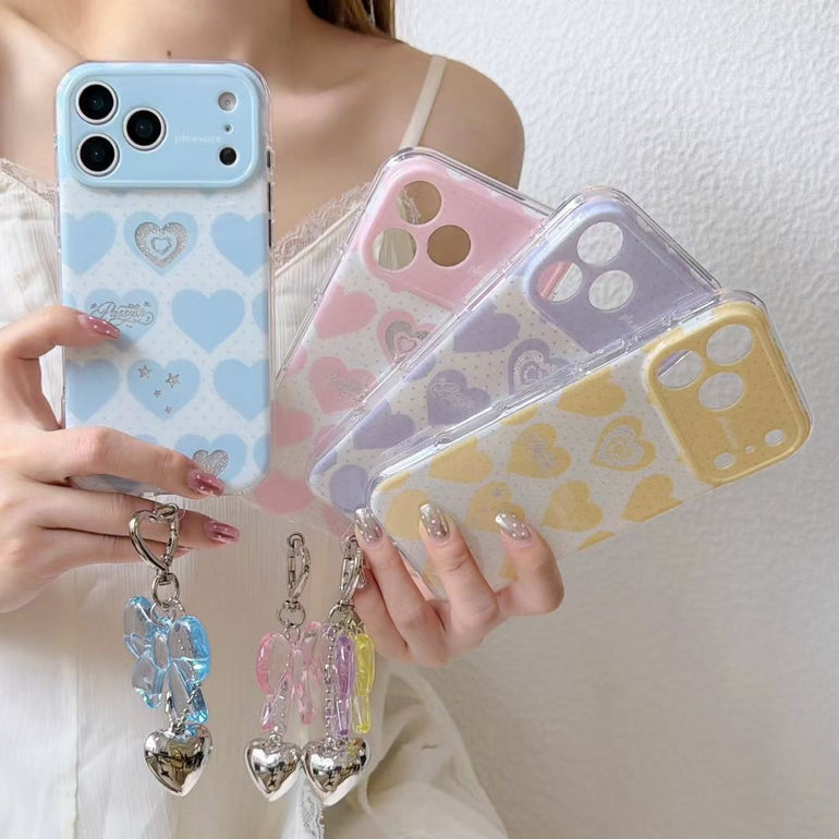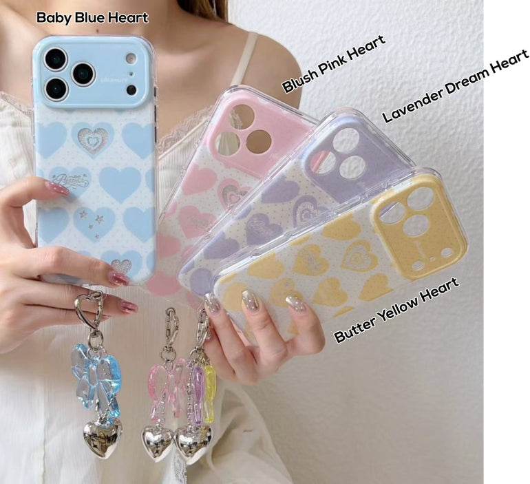 Add a soft, romantic touch to your phone with this pastel heart aesthetic iPhone case, available in dreamy shades like blue, pink, purple, and yellow. Featuring cute heart patterns with subtle detailing and paired with a stylish hanging charm, this case is perfect for creating a trendy and playful look. Lightweight yet protective, it’s designed for everyday style and comfort.