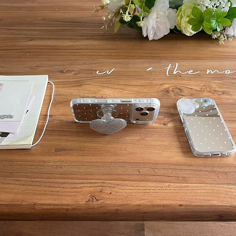 Polka Dot Mirror iPhone Case with Heart Holder