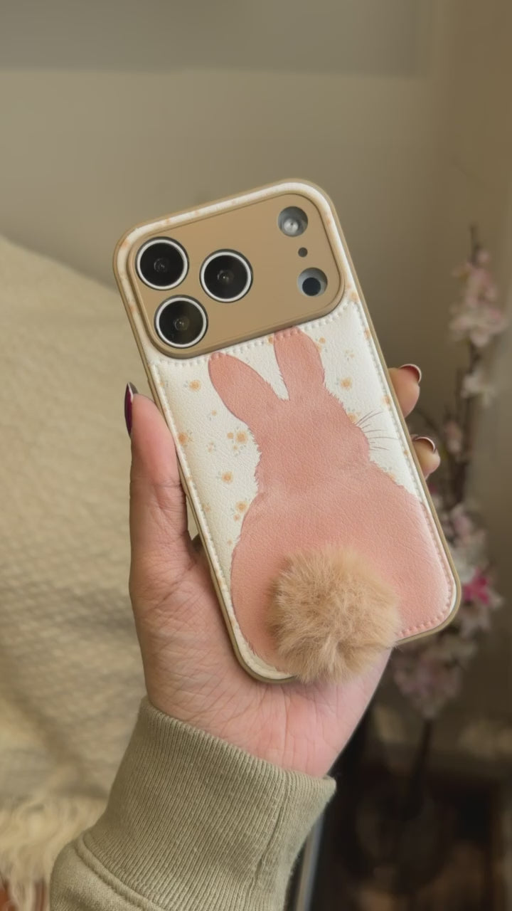 Cute Bunny Fur Tail iPhone Case – Cartoon Design with Pom Pom - Kalakaar Indiaa
