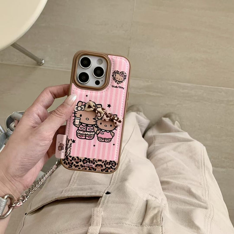Add a cute yet chic touch to your phone with this Pink Kitty iPhone Case, featuring an adorable kitty duo design with striped background and leopard print detailing. The 3D fabric bows give it a fashionable twist, blending soft pink tones with playful animal prints for the perfect girly aesthetic.