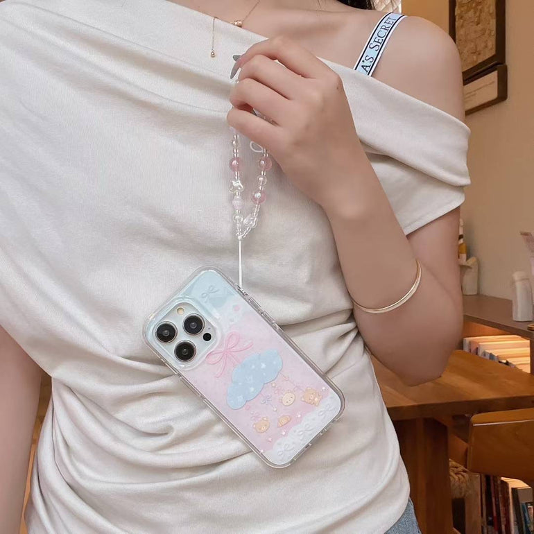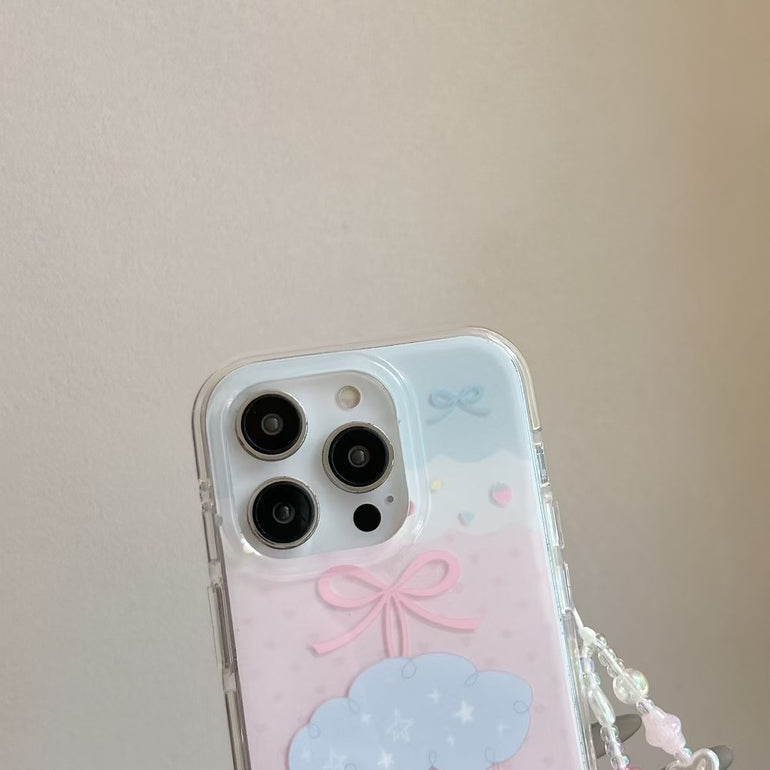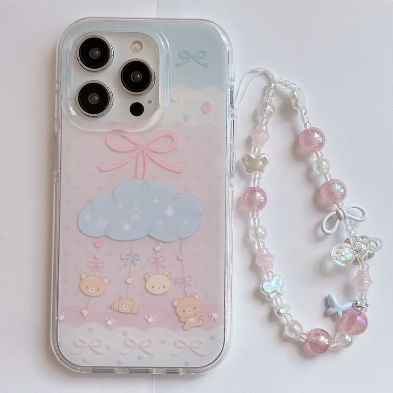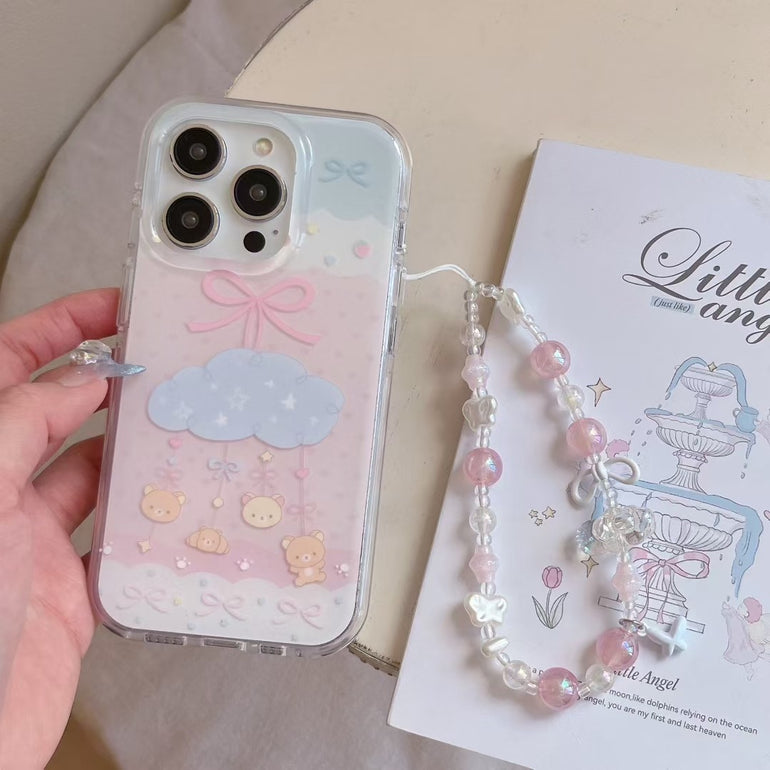 Pastel Cloud Baby Bear iPhone Case – Cute Soft 3D Design with Bow Charm