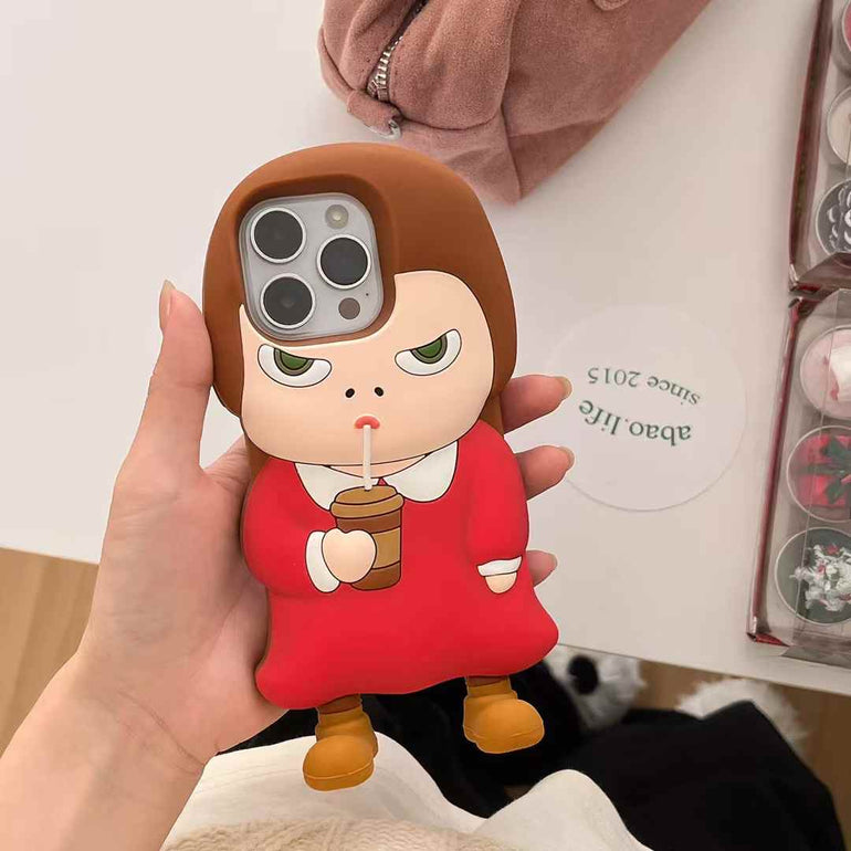 Angry Girl Drinking Coffee Silicon Case For iPhone