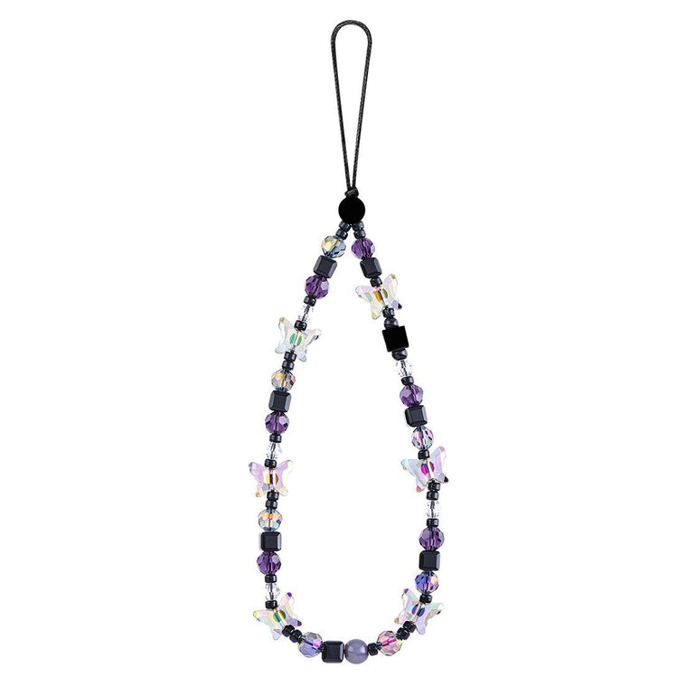 Add a touch of sparkle to your phone with this Crystal Butterfly Beaded Phone Charm Strap. Designed with shimmering crystal beads, elegant purple accents, and glossy butterfly charms, it gives a premium and aesthetic look to your everyday phone style.