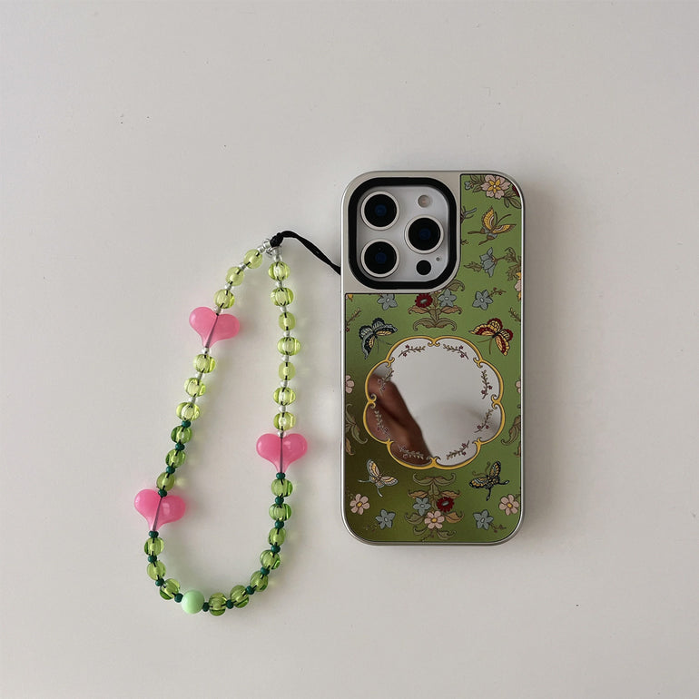 Add a cute and trendy touch to your phone with this Pink Heart Beaded Phone Charm. Designed with translucent green crystal beads and pink heart details, it’s the perfect accessory to match your phone case, bag, or even use as a stylish wrist strap.