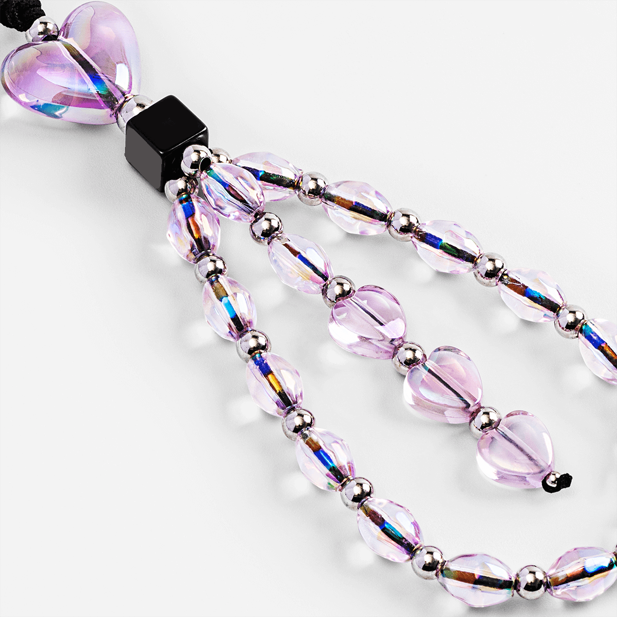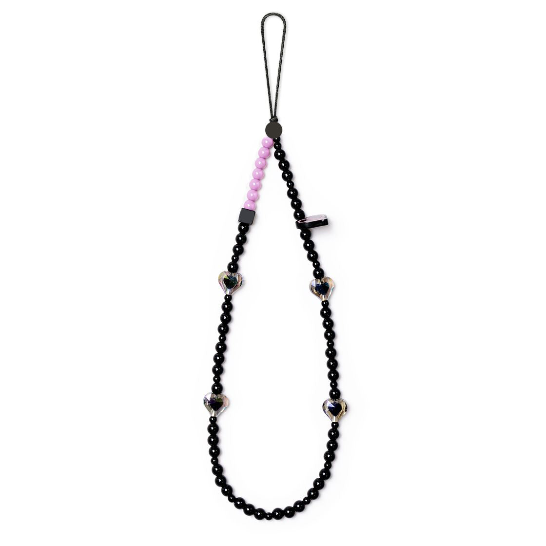 Black Beaded Heart Phone Charm Strap – Elegant Hanging Mobile Accessory