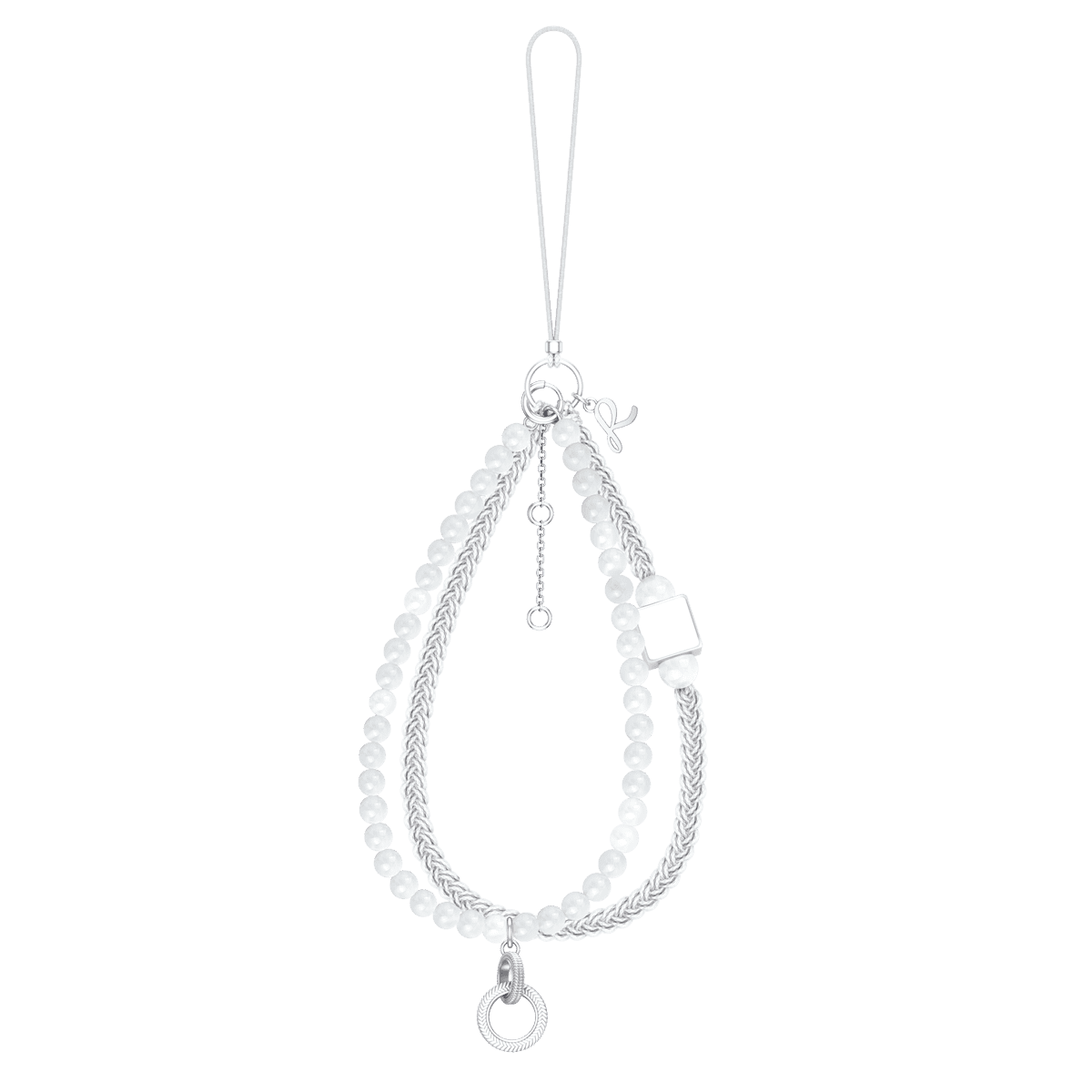 White Beaded Chain Phone Charm Strap – Minimal Hanging Mobile Accessory