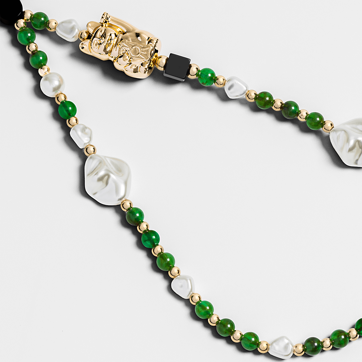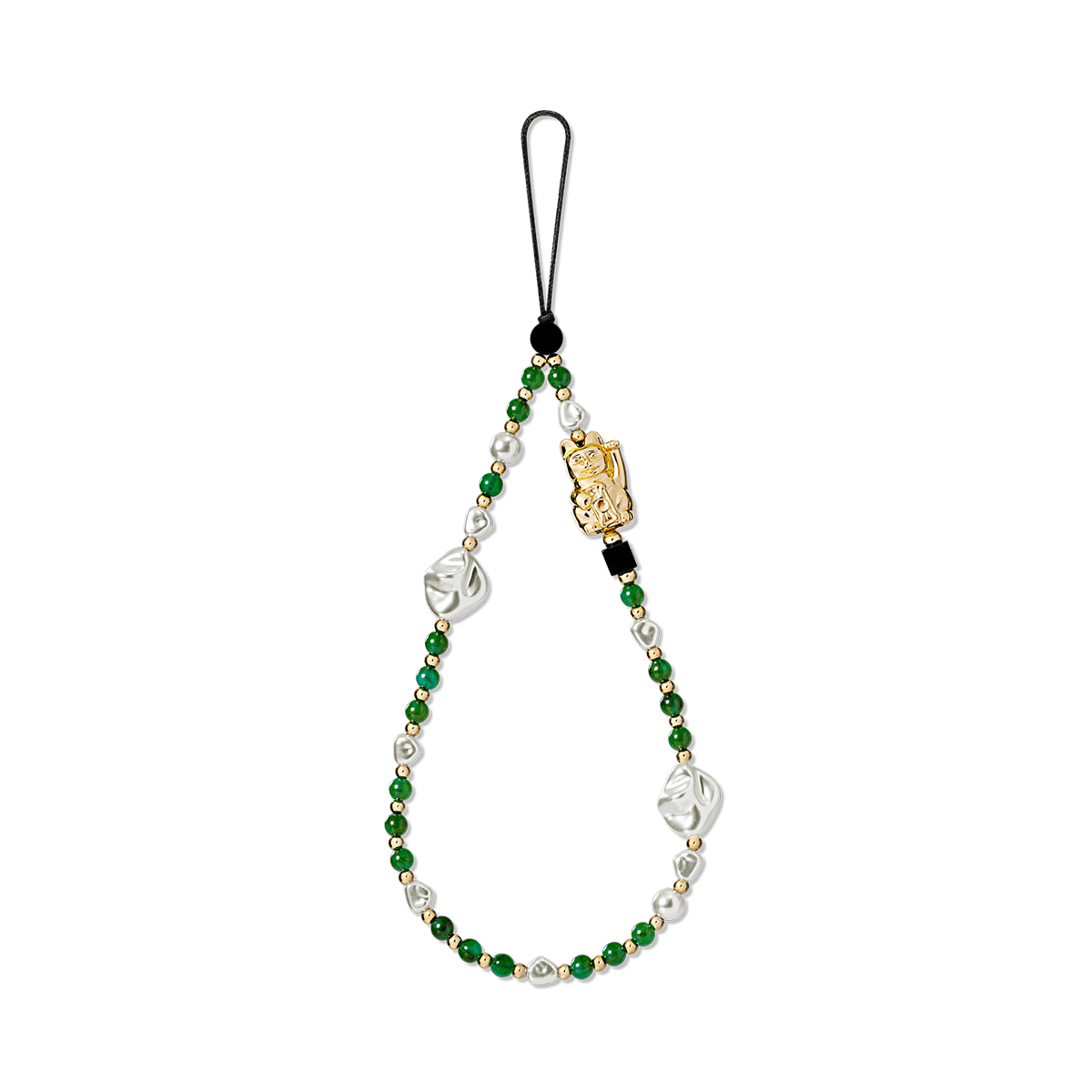 Lucky Cat Green Beaded Phone Charm Strap – Elegant Hanging Mobile Accessory