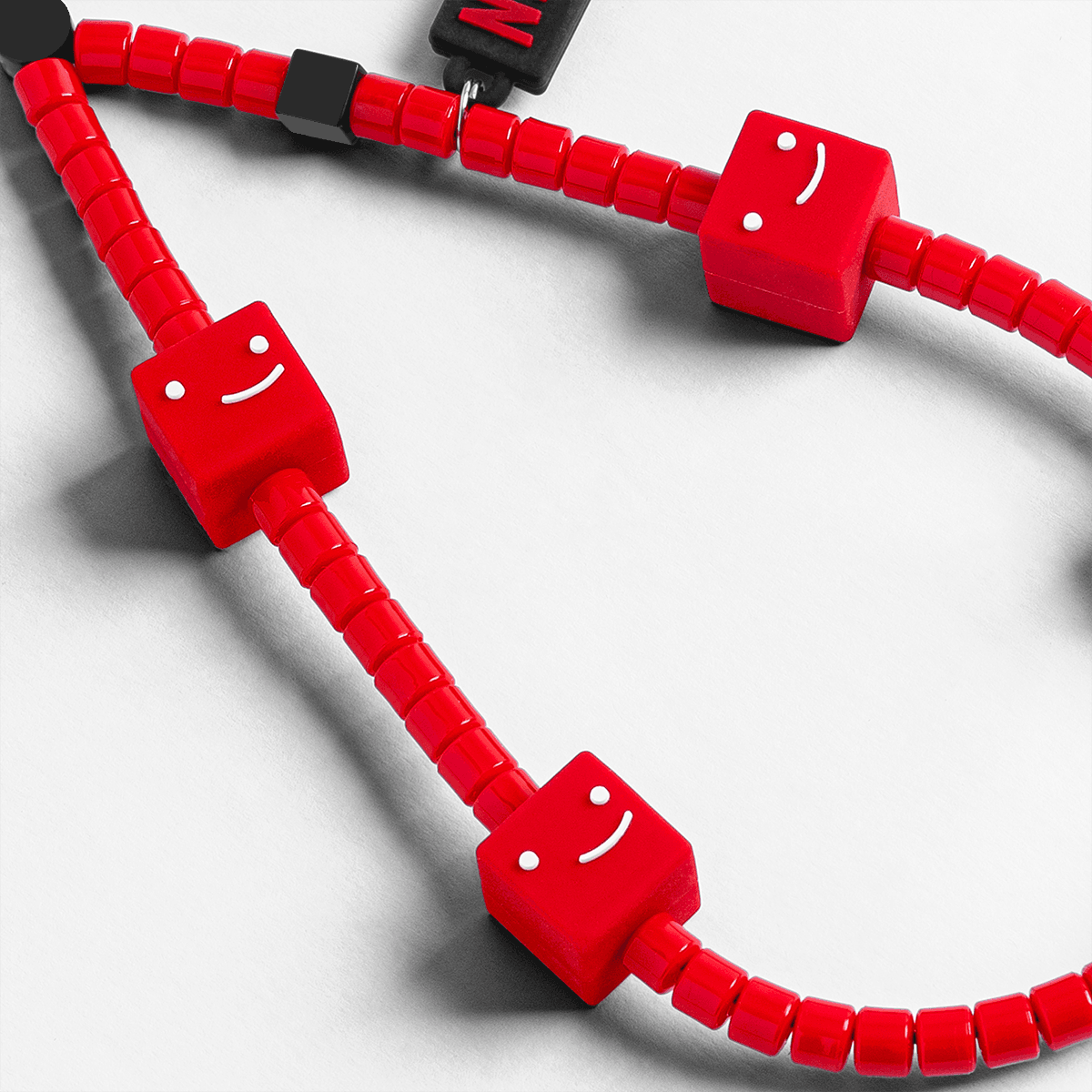 Red Smiley Beaded Phone Charm Strap – Bold Hanging Mobile Accessory