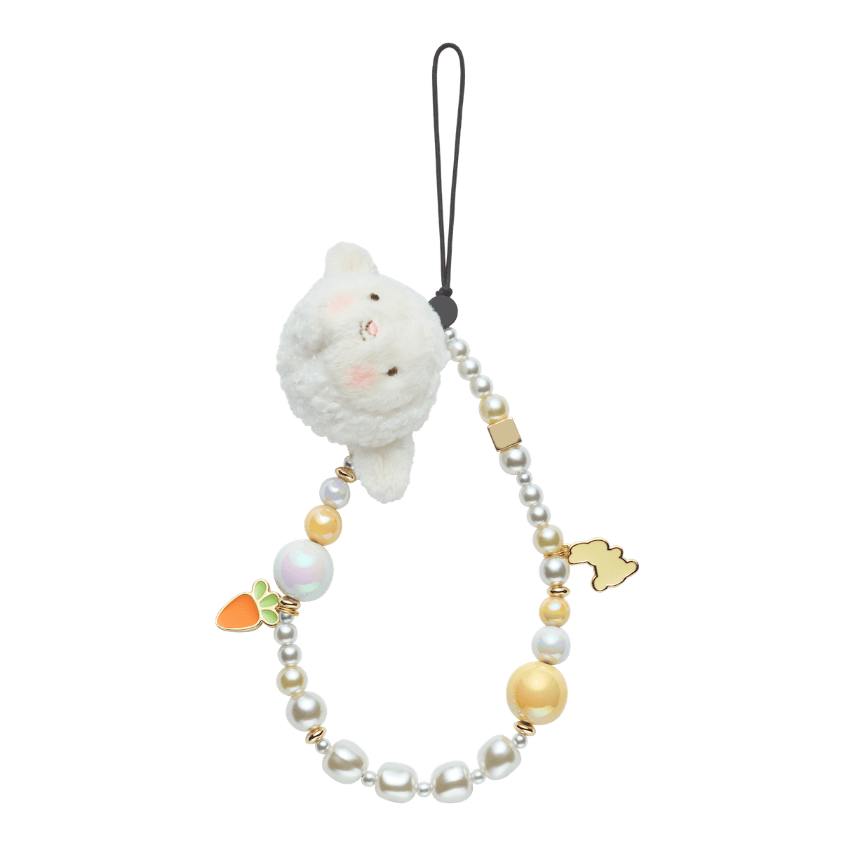 Plush Bunny Pearl Phone Charm Strap – Cute Hanging Mobile Accessory