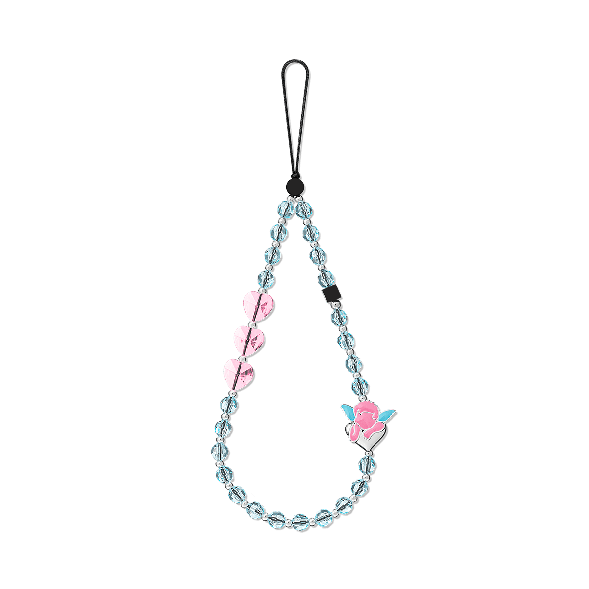Cupid Phone Charm Strap – Lovestruck Blue Beaded Heart Mobile Accessory