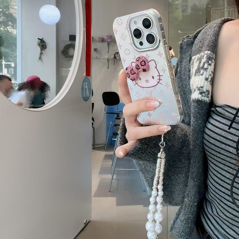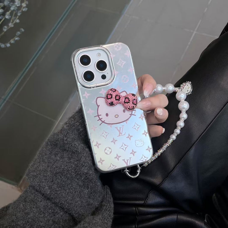 Luxury Branded Kitty Silicon Case With Hand Bracelet