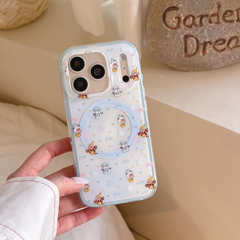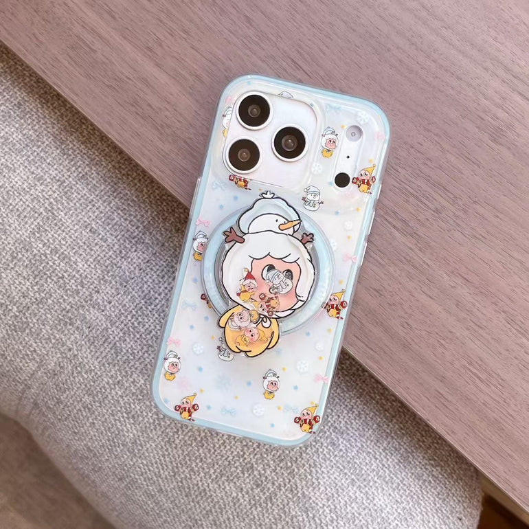 Cute Winter Cartoon iPhone Case with MagSafe Holder