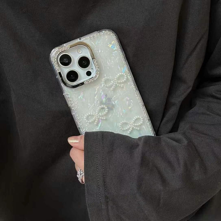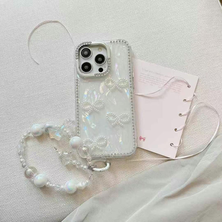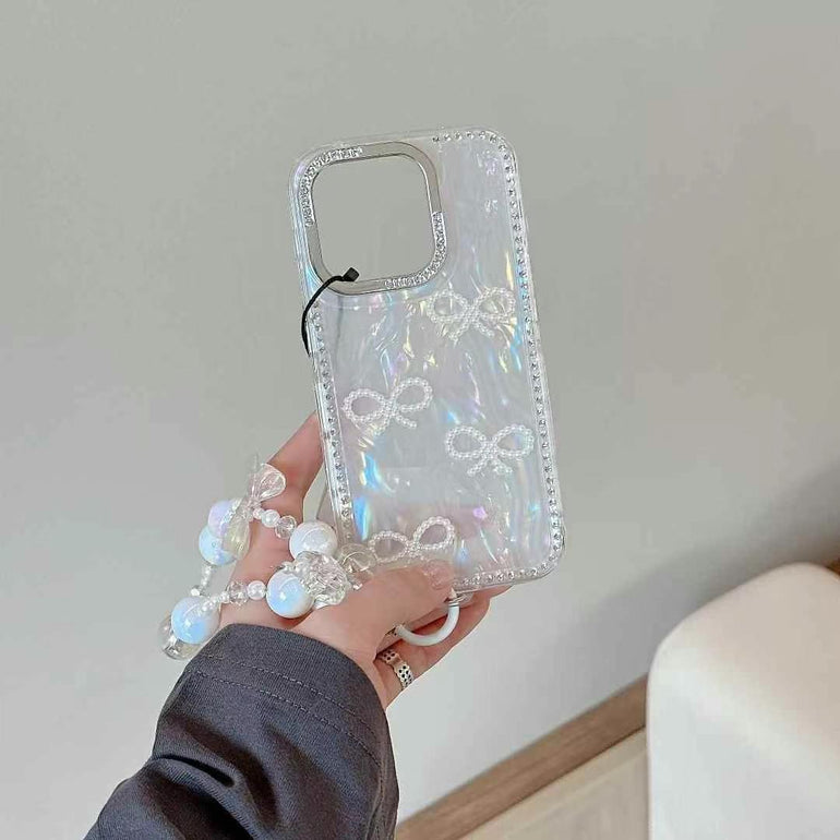 Beaded Bow Pattern Silicon iPhone Case With Beaded Charm