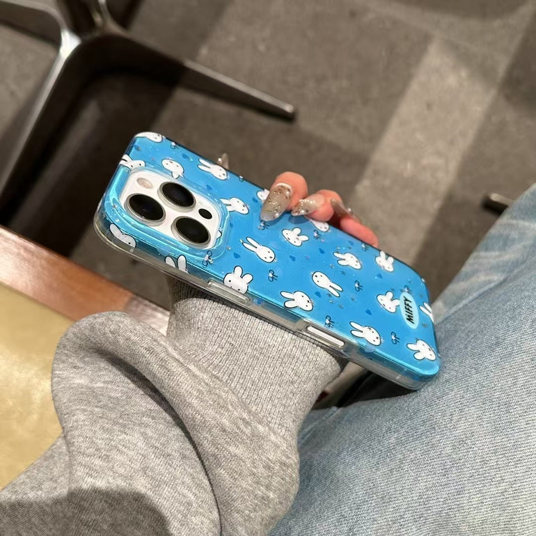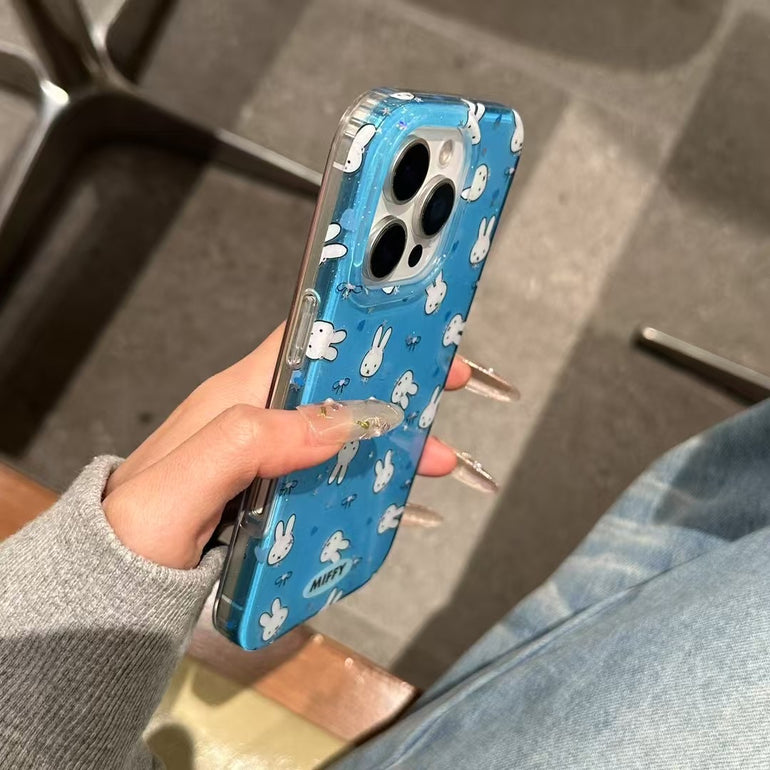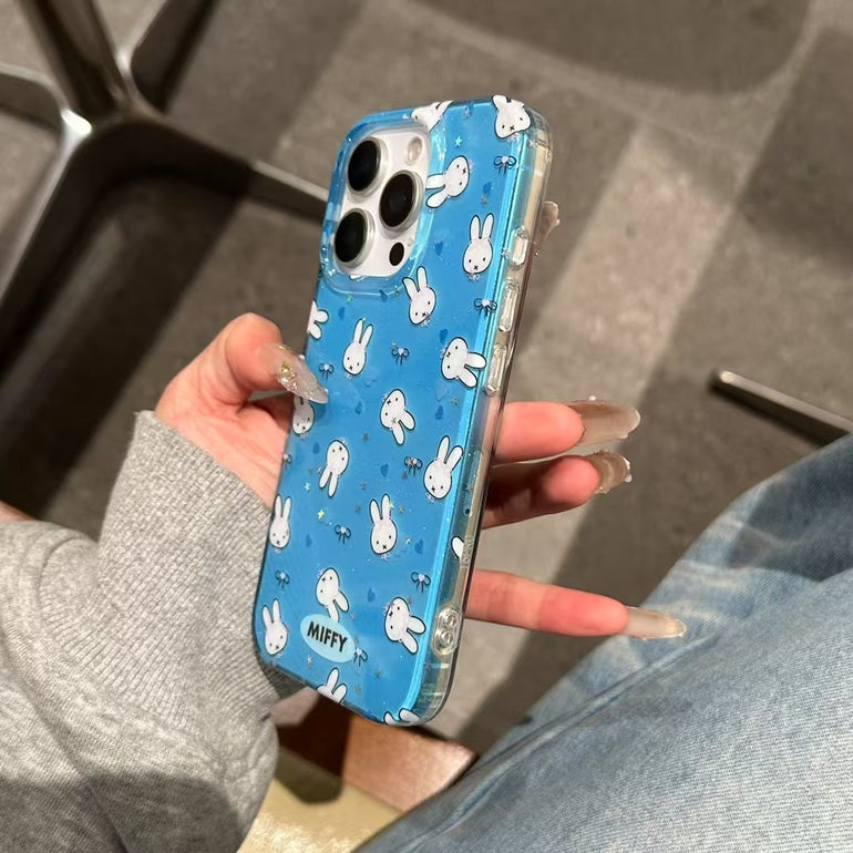 Bunny Pattern Silicon Case For iPhone With Bunny Holder With Bunny Charm