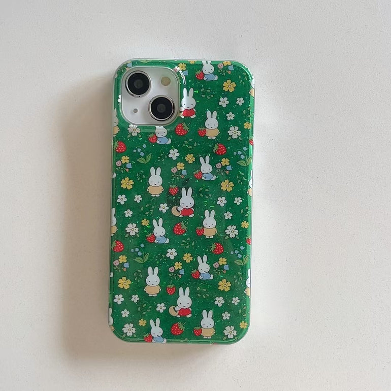 Bunny Strawberry Silicon Case For iPhone With Strawberry Charm