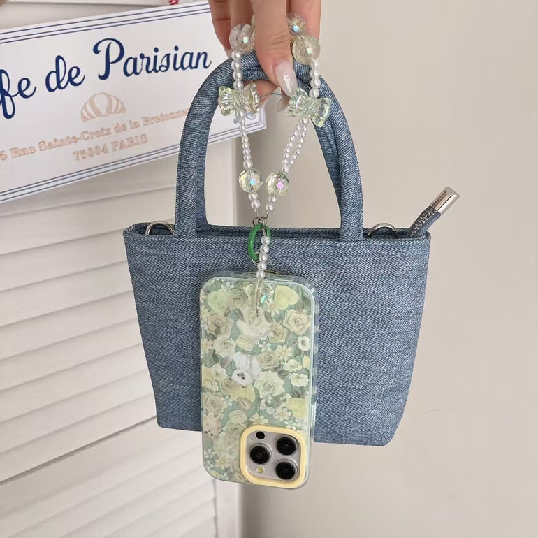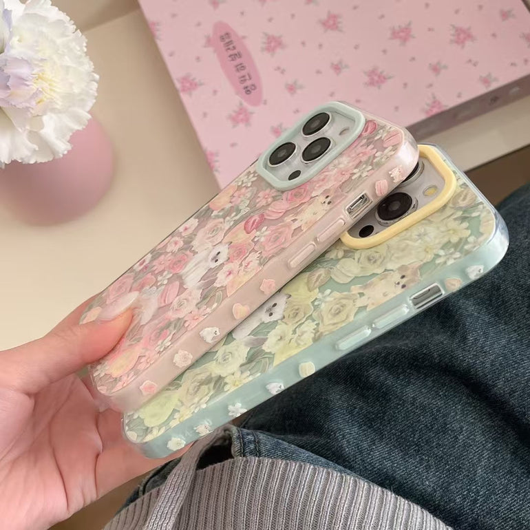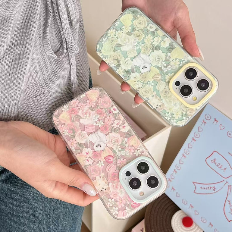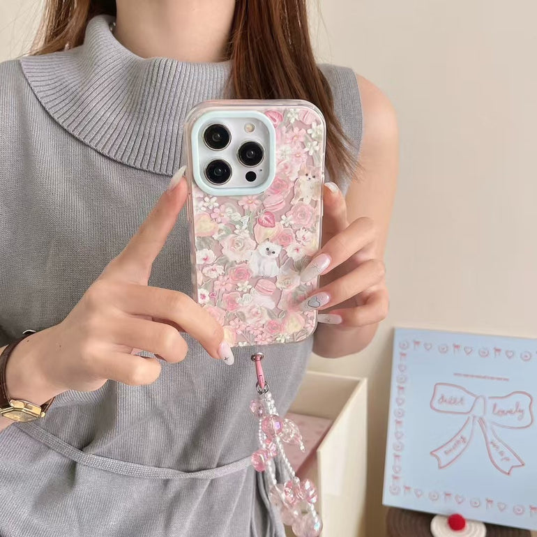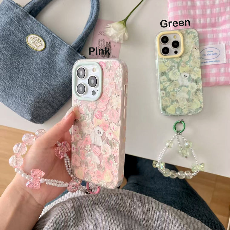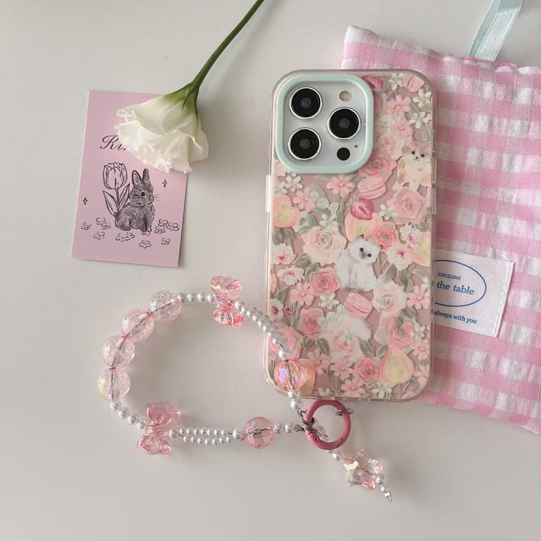 Cats In Garden Silicon Case For iPhone With Bow Beaded Charm