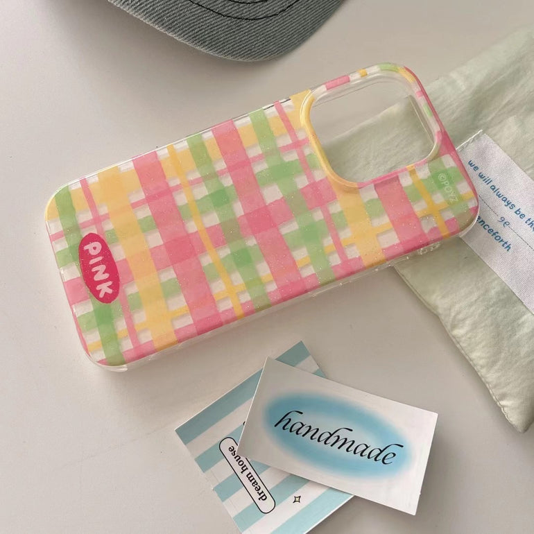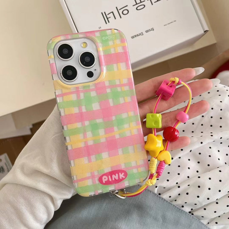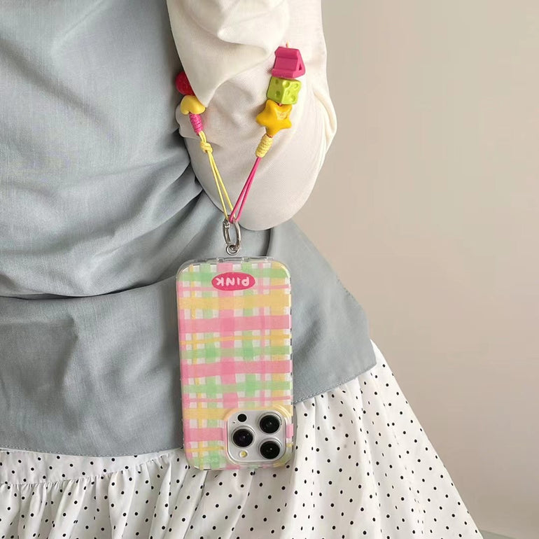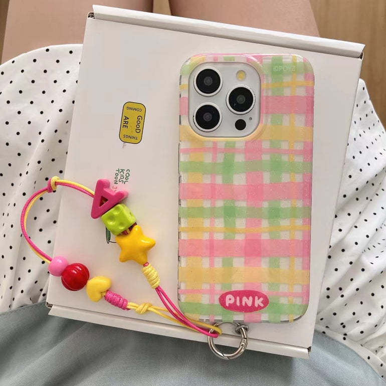 Check Stripes Silicon iPhone Case With Cute Charm