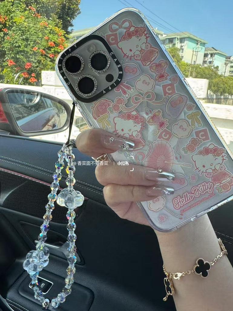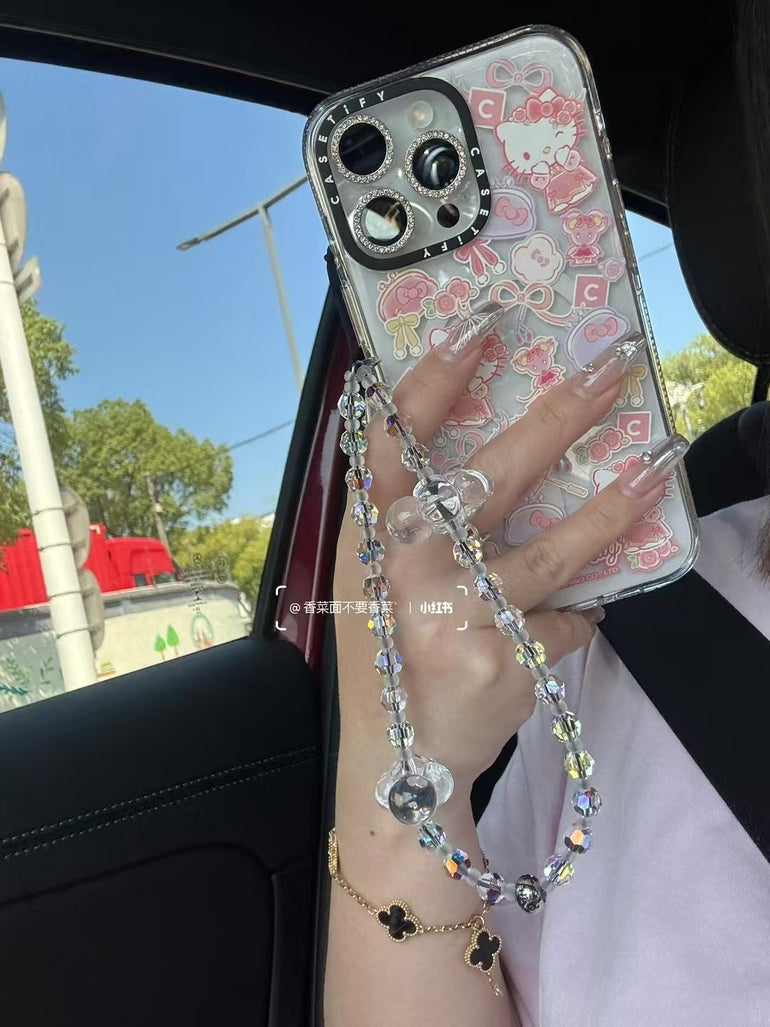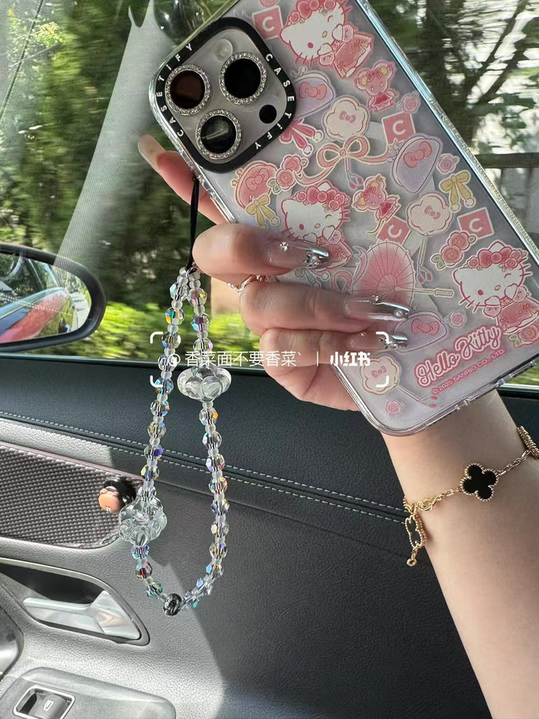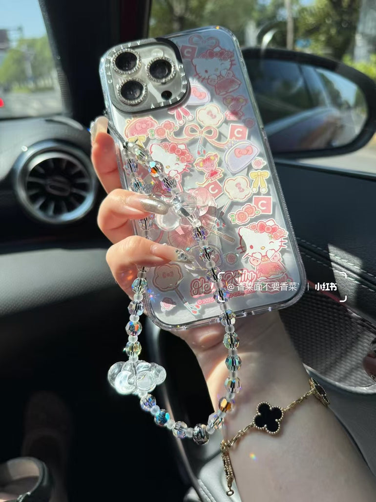 Clear Hello Kitty Glitter Case with Bow Icons & Crystal Charm Strap