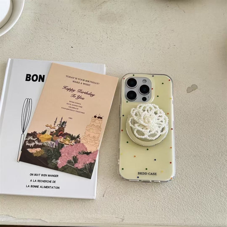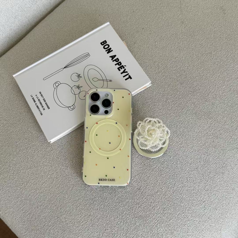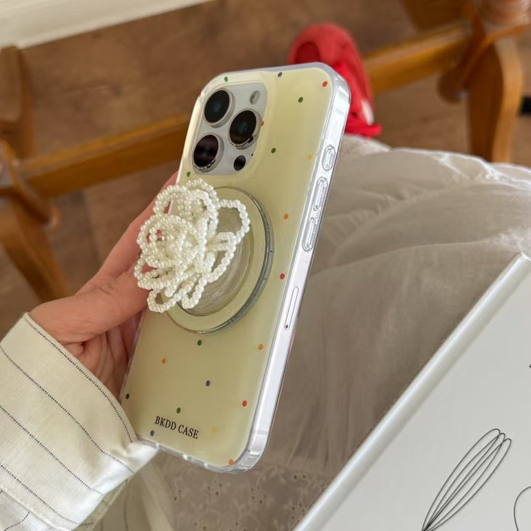 Colorful Dotted Magsafe iPhone Case With Beaded Rose Magsafe Holder
