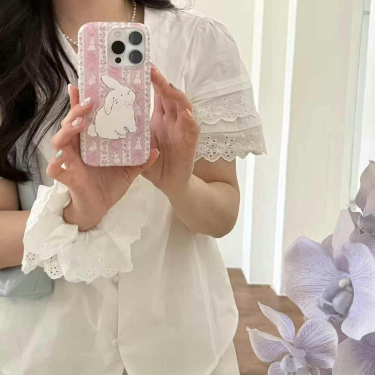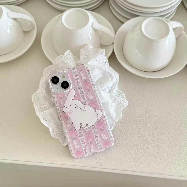 Cute Bunny Strips Silicon iPhone Case With Bunny Holder