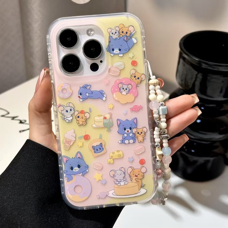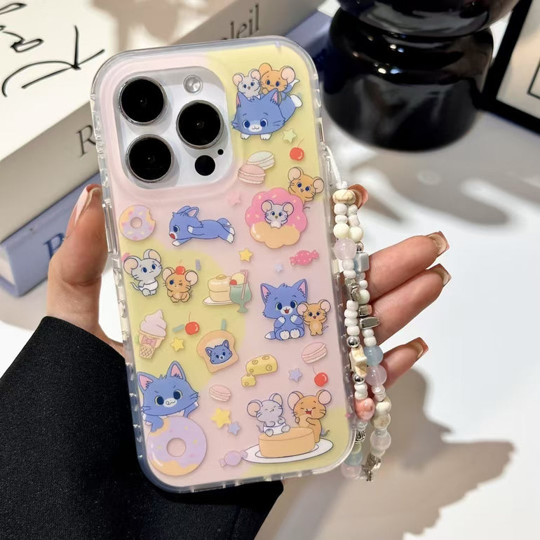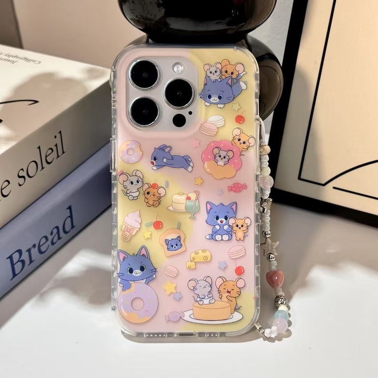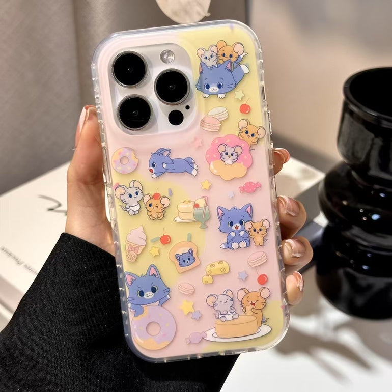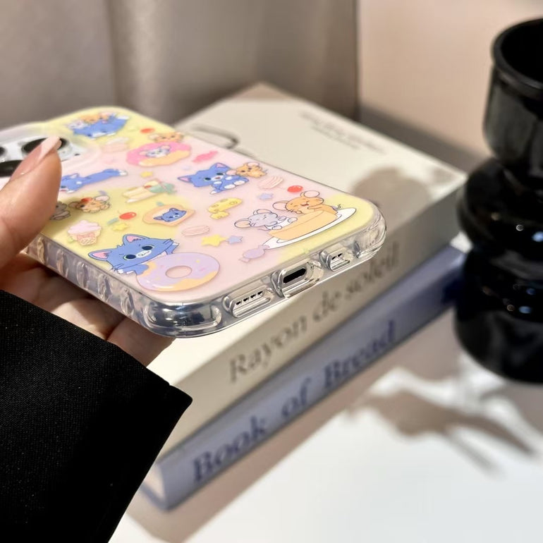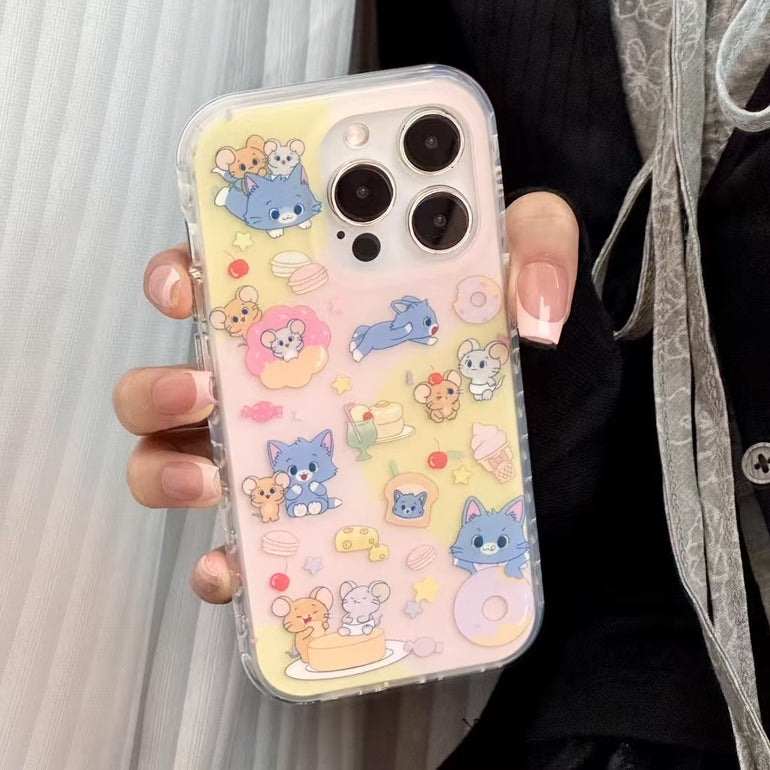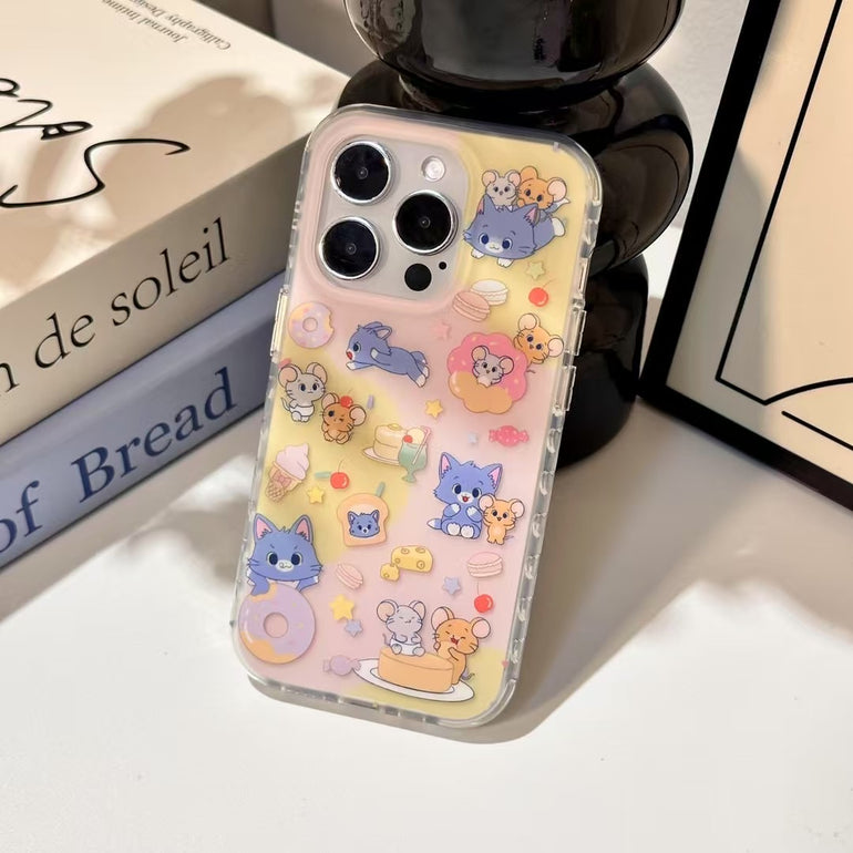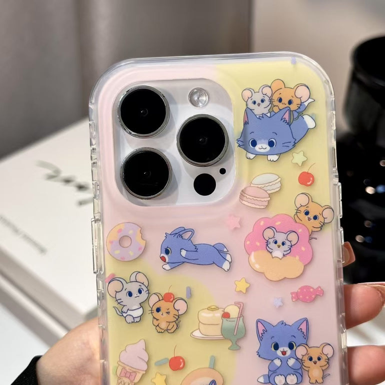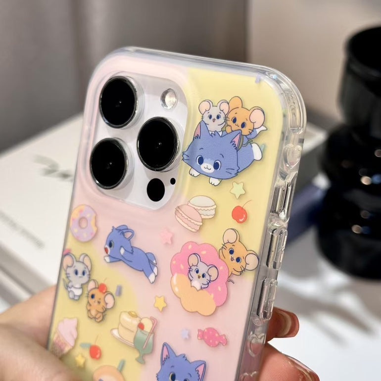 Cute Cartoon Cat & Mouse iPhone Case – Colorful Pastel Dessert With Charm