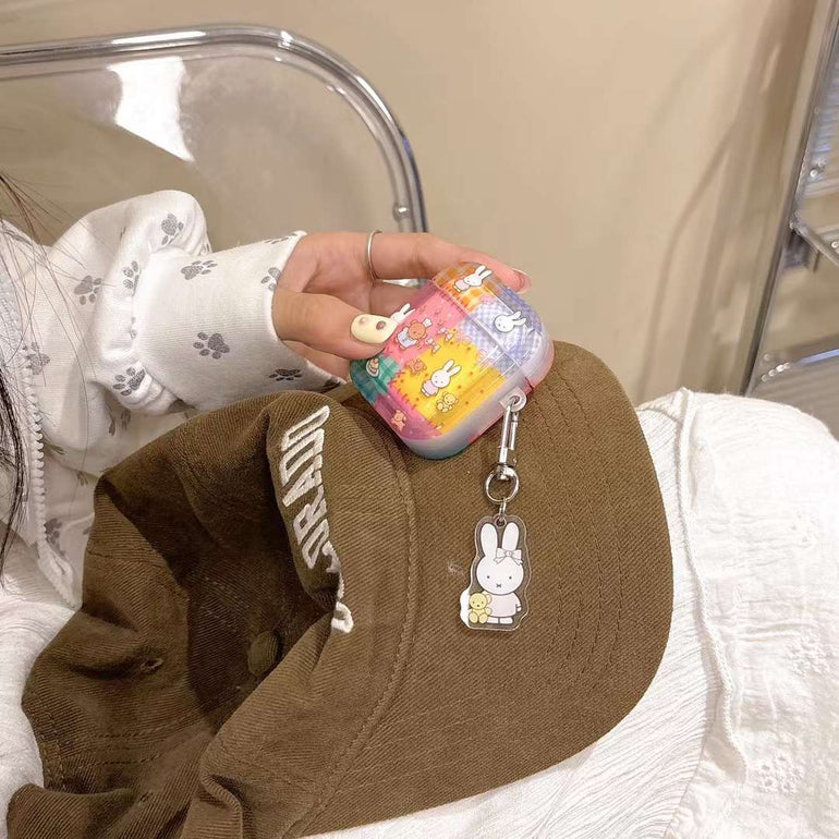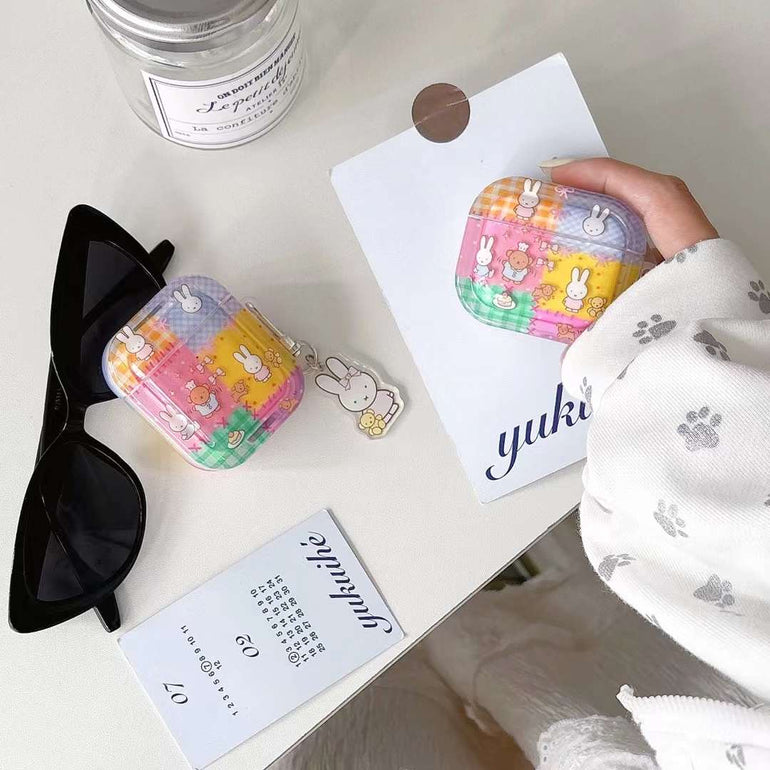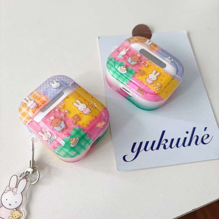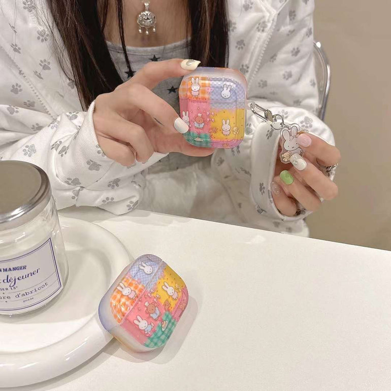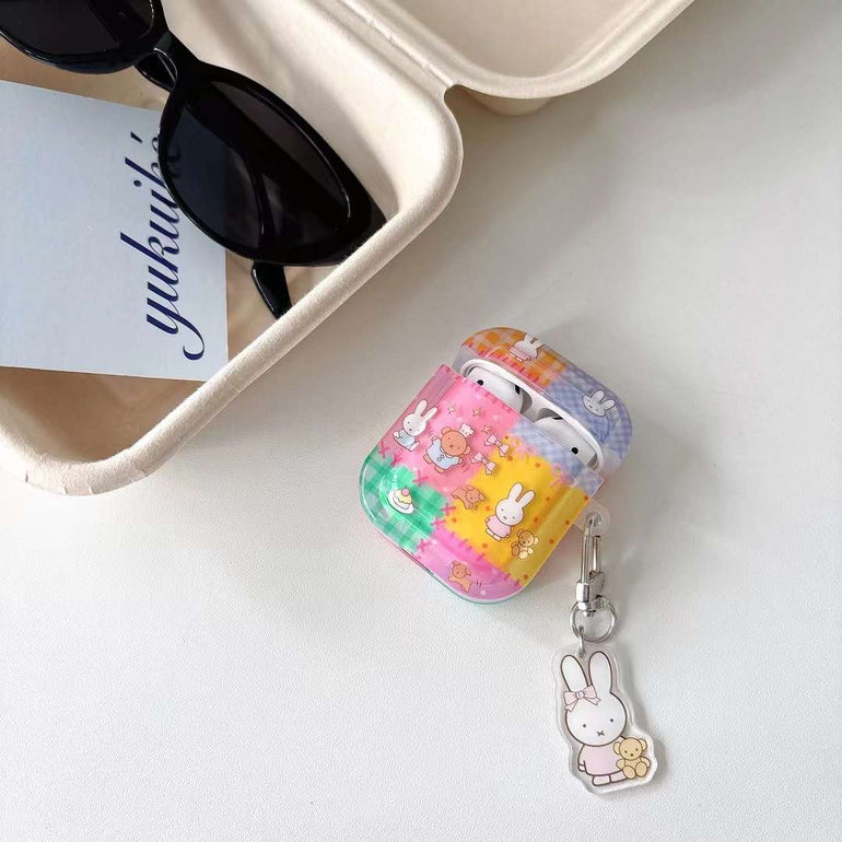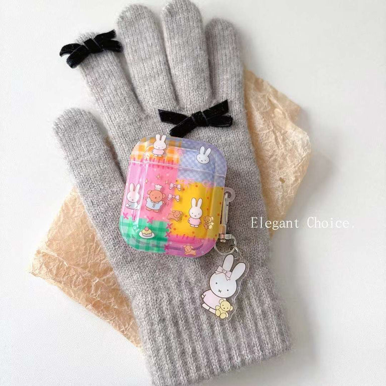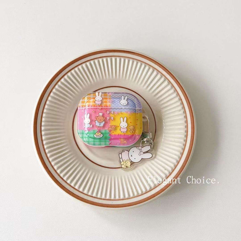 Cute Cartoon Pattern Silicon Airpod Case with Bunny Charm