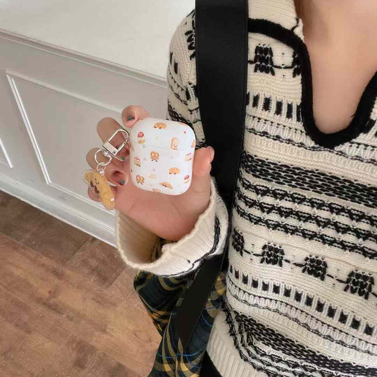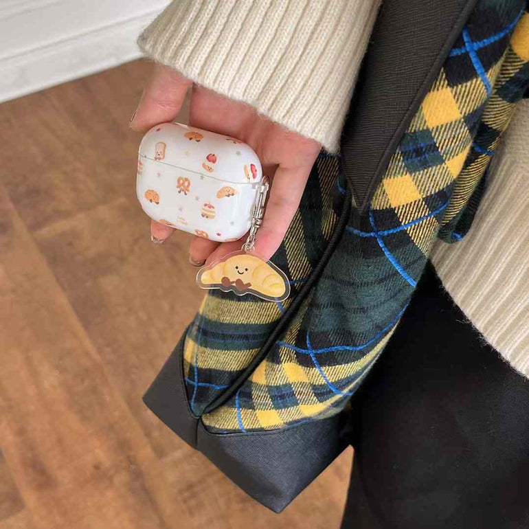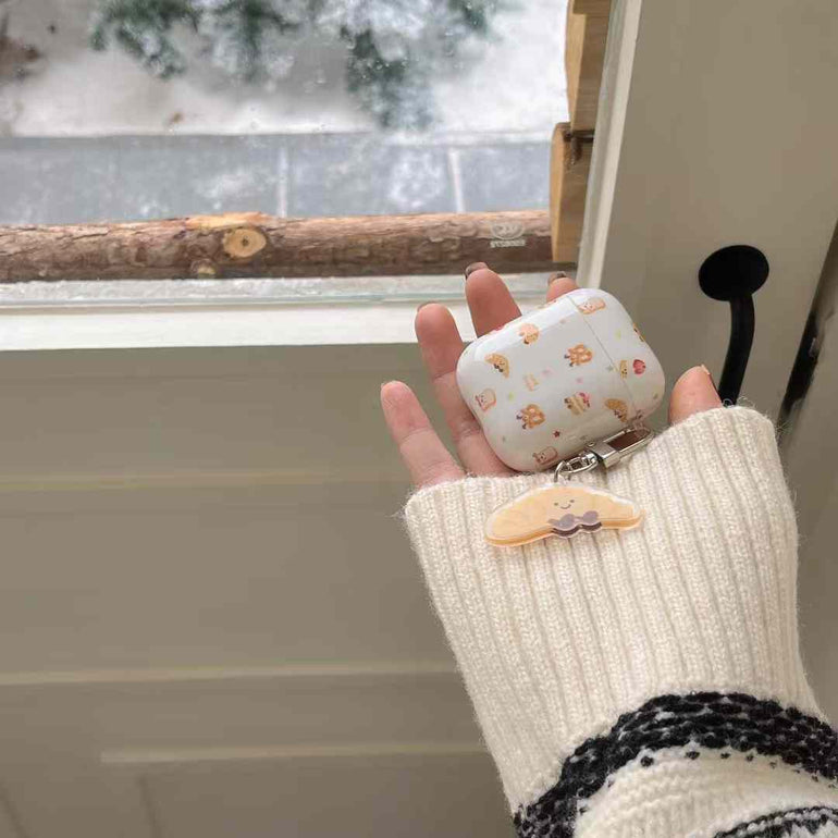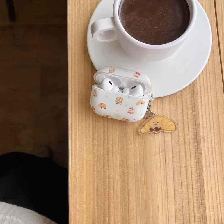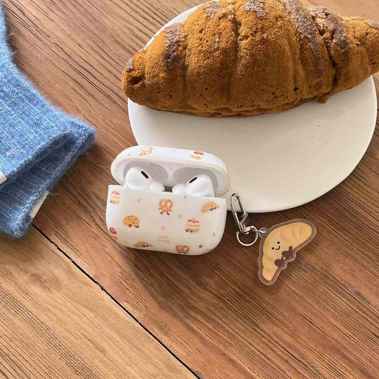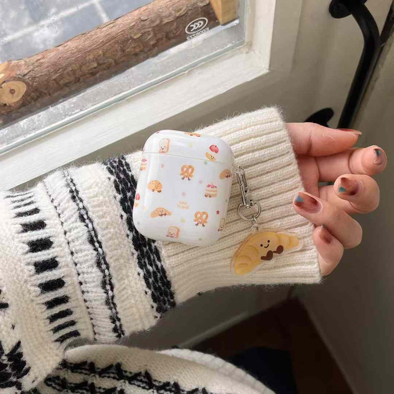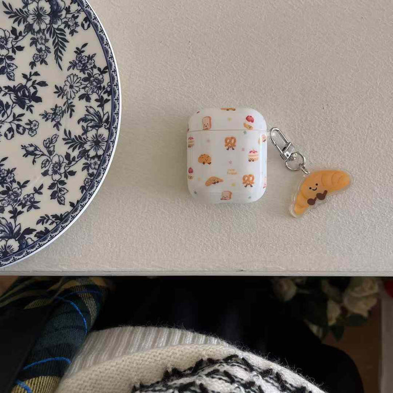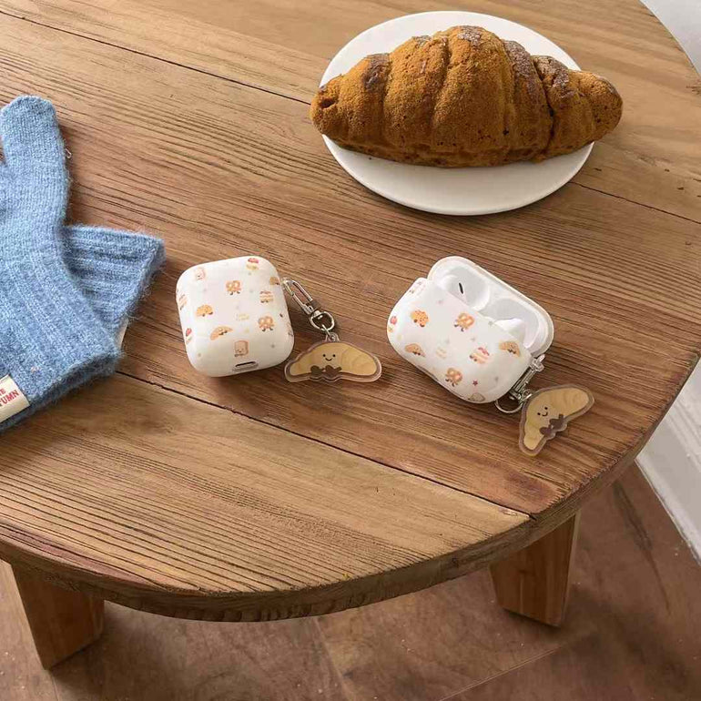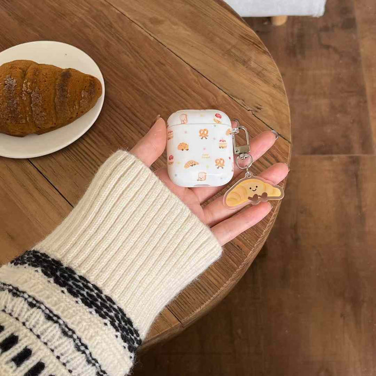 Cute Croissant Pattern Silicon Airpod Case With Cute Charm