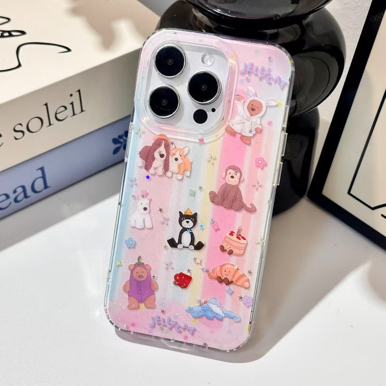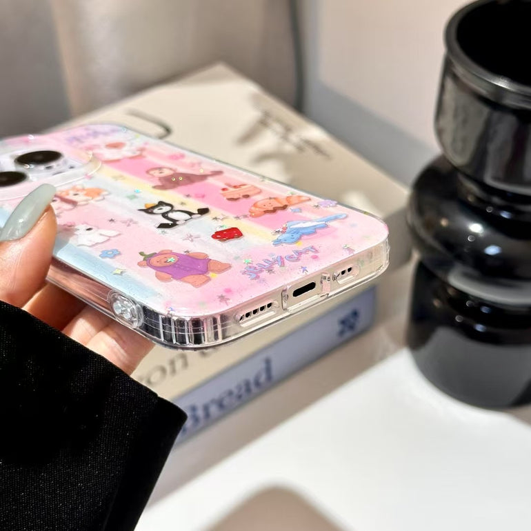 Cute Jellycat iPhone Case with 3D Cartoon Animals & Pearl Charm