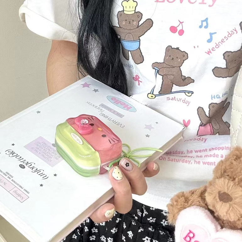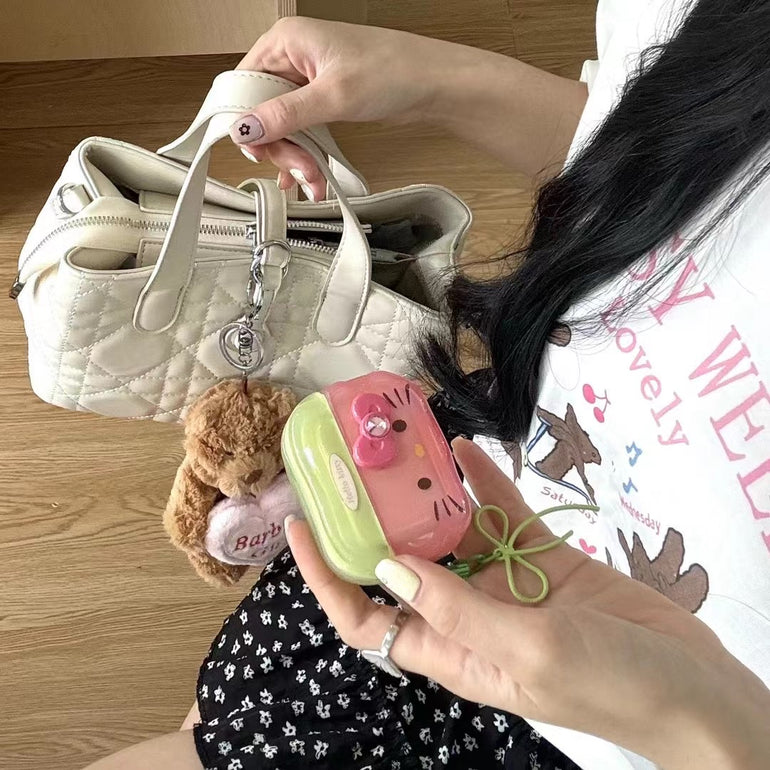 Cute Kitty AirPods Case And Glossy Pink & Green with Bow Charm