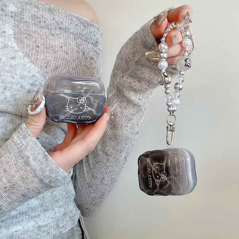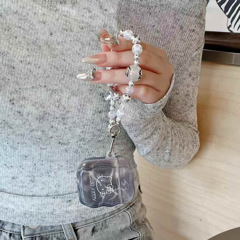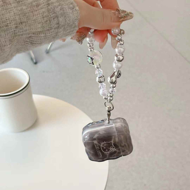 Cute Kitty Gradient Silicon Airpod Case With Beaded Charm